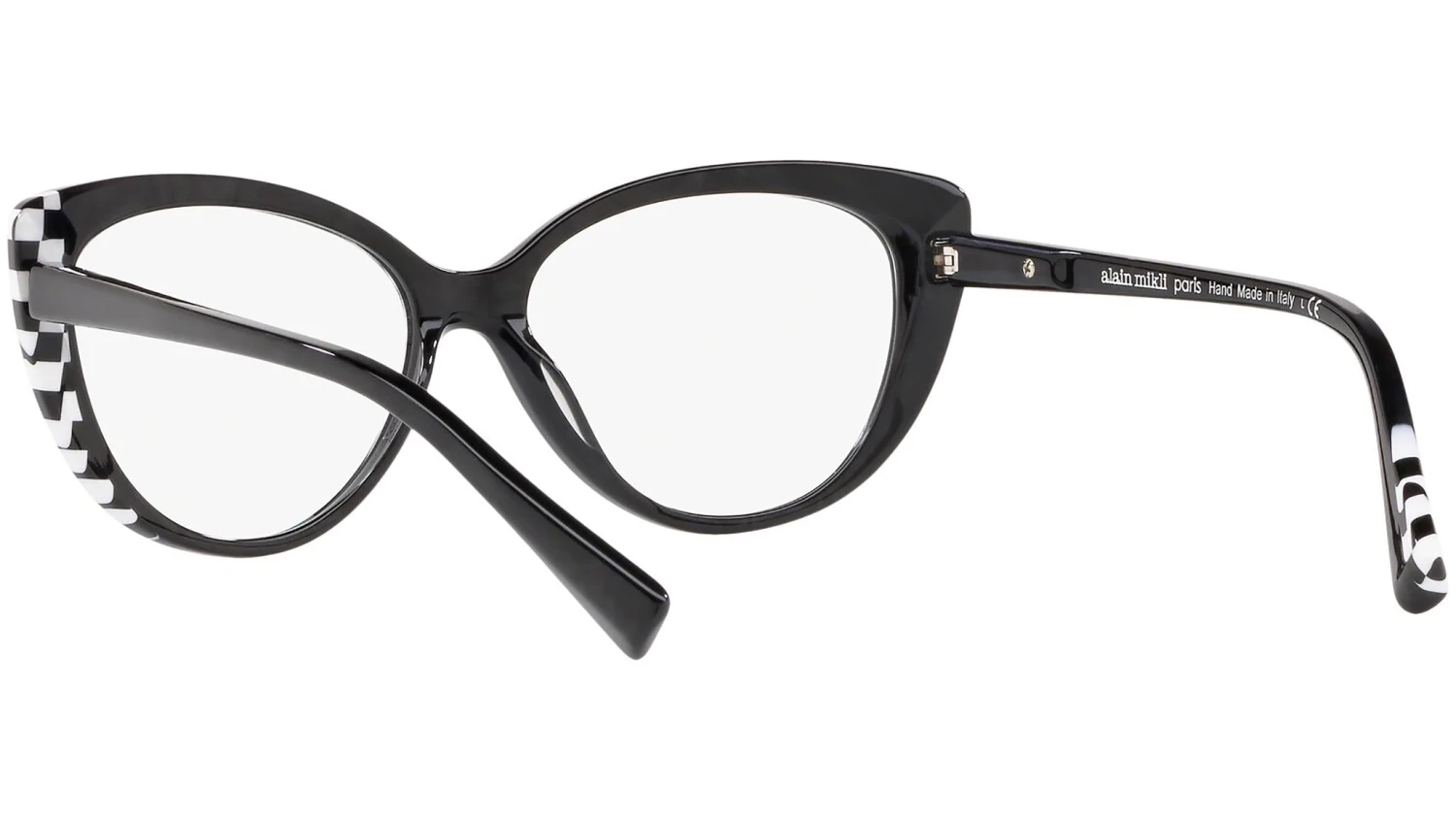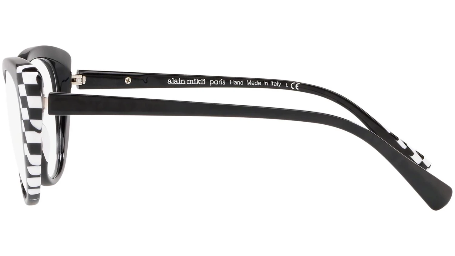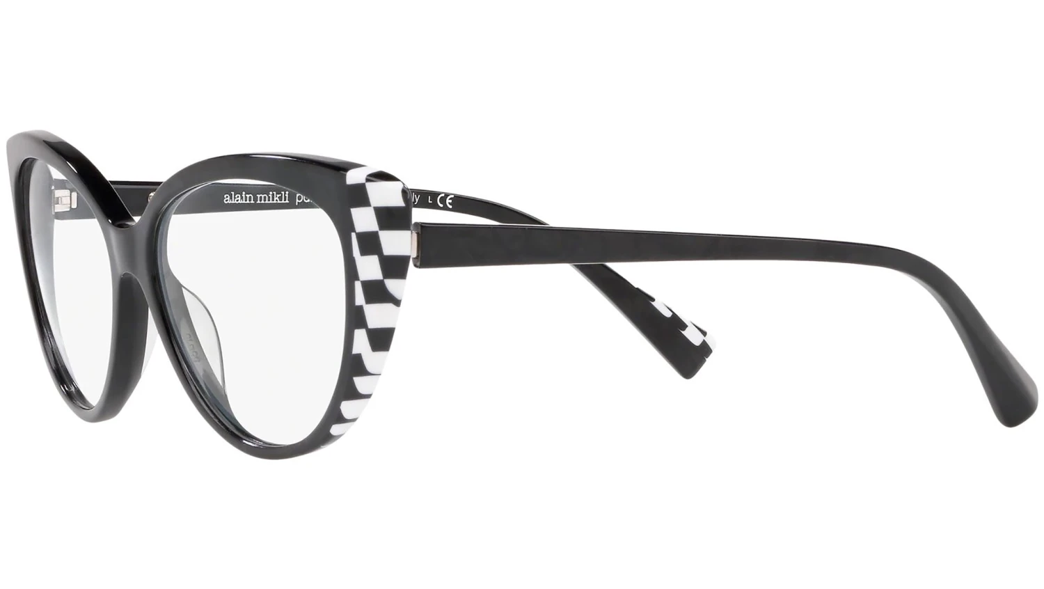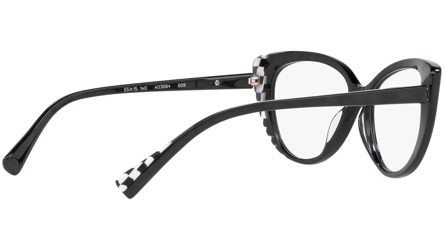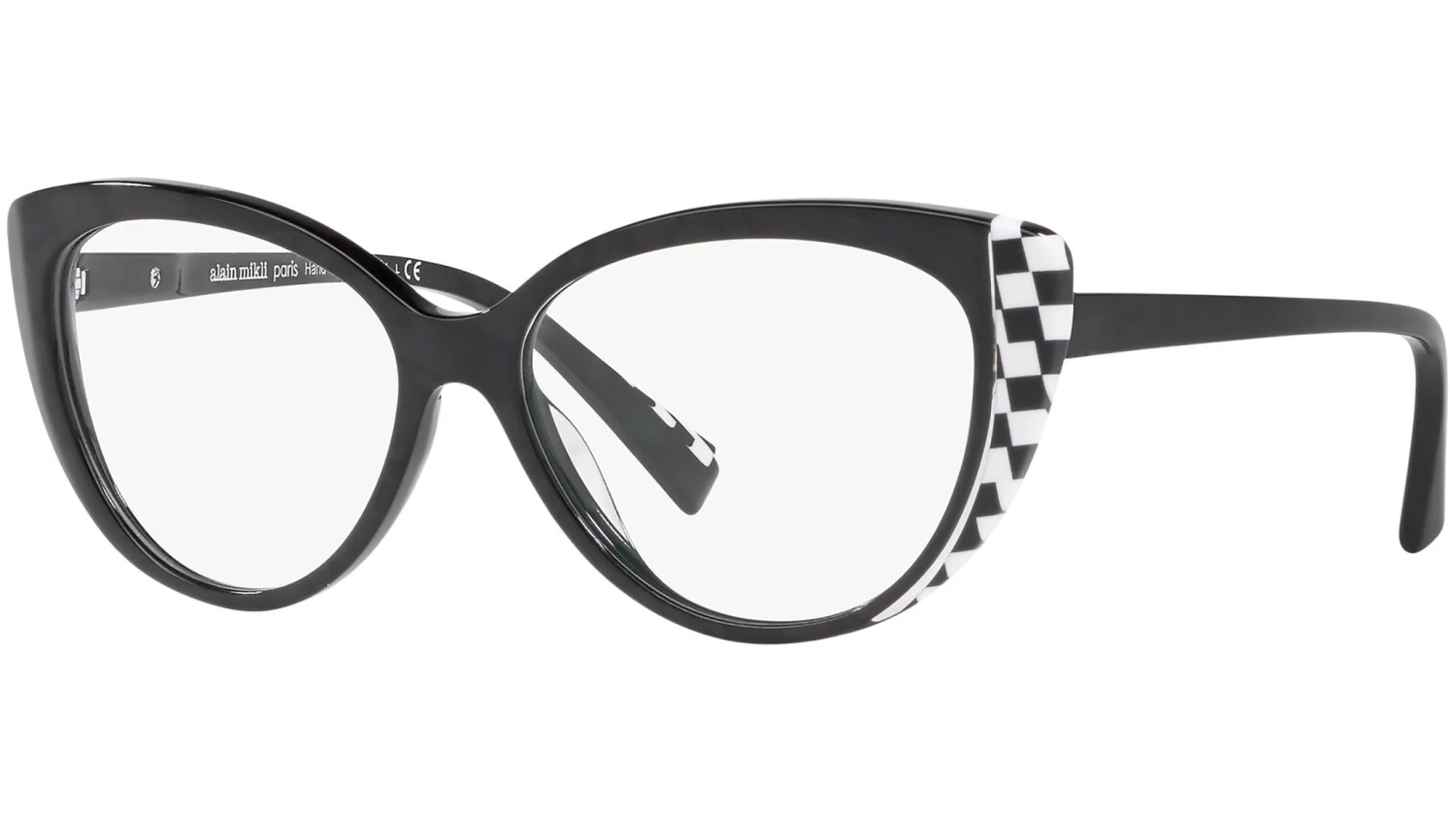Alain Mikli Eyewear Collection model 0A03084, crystal and black damier and noir mikl frame variant, color code 008. Alain Mikli is known for pioneering eyewear as an accessory. The brand fuses art with fashion to create frames that are wearable yet distinctive and provocative – with unique design and exclusive color combinations.