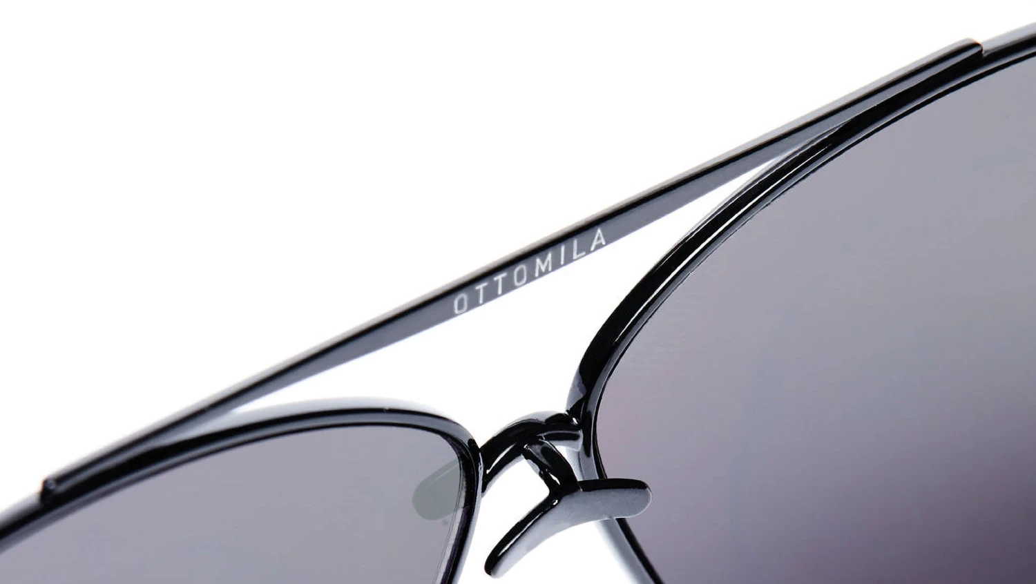 Ottomila eyewear sunglasses model 8M8/BK (Black). LENS: ZEISS Lenses. Smoke. FRAME: Ultra light TITANIUM. Black Shiny. CASE: Genuine leather pouch, hand made in Italy. Perforated Black, red stitching. The box also contains; high quality cleaning cloth and informative cards. SIZE: Lens size 57mm (2. 3 inches), total front width 142mm (5. 7 inches), temple length 134mm (5. 27 inches). Limited Edition: each model is produced as a limited edition, with no more than 8,000 copies. As testimony to its uniqueness, each product is marked with a serial number.umber lasered on the inside of the temples. Sizes: L Lens Width: 57 mm Frame Front: 146 mm Frame Side: 135 mm Product Code Size L: 6OX
