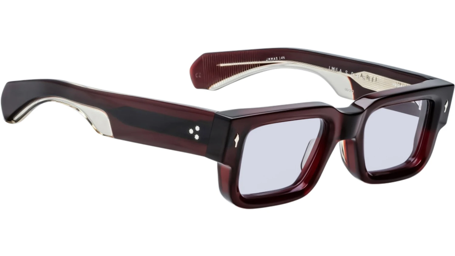 The Jacques Marie Mage Ascari sunglasses channel the bold, confident spirit of mid-century motorsport through a refined, rectangular design inspired by the 1950s. Meticulously crafted, the frame features custom double-laminated temples adorned with the brand’s signature precious metal arrowhead front pins, while hairline-engraved wirecores add a layer of intricate detail. Balancing assertive aesthetics with technical precision, these sunglasses embody a sophisticated blend of heritage and performance, making them a distinctive choice for those who favor character and craftsmanship over convention.