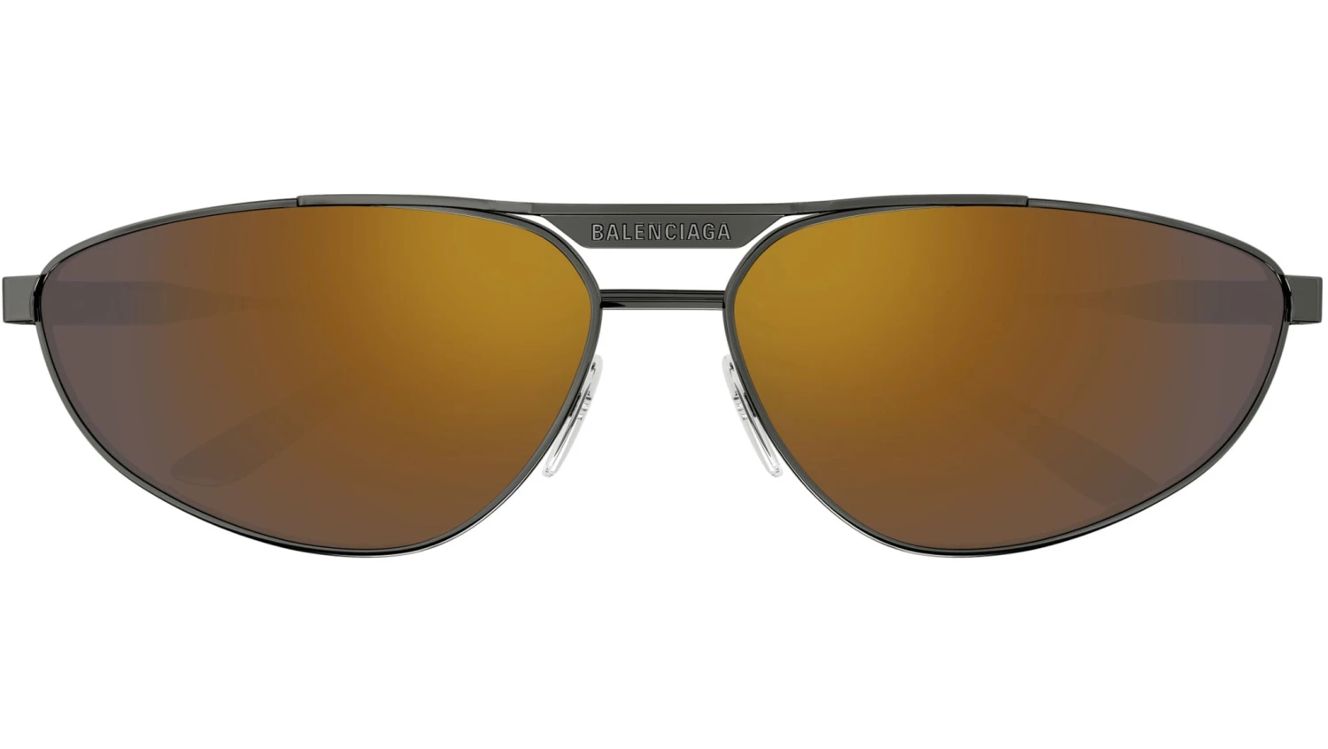 Balenciaga BB0417S 003 sunglasses for men and woman, featuring shiny dark ruthenium pilot metal frame and solid brown + mirror bronze bio nylon lenses. Brand line: Everyday. Style code: BB0417S. Color code: 003. Made in Japan. Authorized Balenciaga online reseller. Your glasses will include the original case and accessories and are covered by a 12-month global warranty.