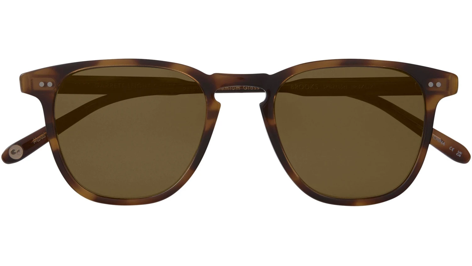 Garrett Leight Brooks Sun sunglasses featuring spotted brown shell squared acetate frame and semi-flat pure coffee polar lenses. These bestselling sunglasses feature a classic square silhouette and are meticulously crafted from high-quality materials. Available with polar lens options, they offer enhanced visual clarity and protection. Key specifications include hand-finished premium glass polar lenses, cured cellulose acetate paired with the GLCO core wire, and durable five-barrel hinges equipped with real rivets and external pins at the temples. Designed to provide 100% UV protection, these sunglasses come with a soft case and cleaning cloth for safe storage and maintenance. Enjoy free shipping and returns with this purchase. Brand line: Forever Classics. Style code: 2002. Color code: SPBRNSH/SFPCOF PLR. Authorized Garrett Leight online reseller. Your glasses will include the original case and accessories and are covered by a 12-month global warranty.