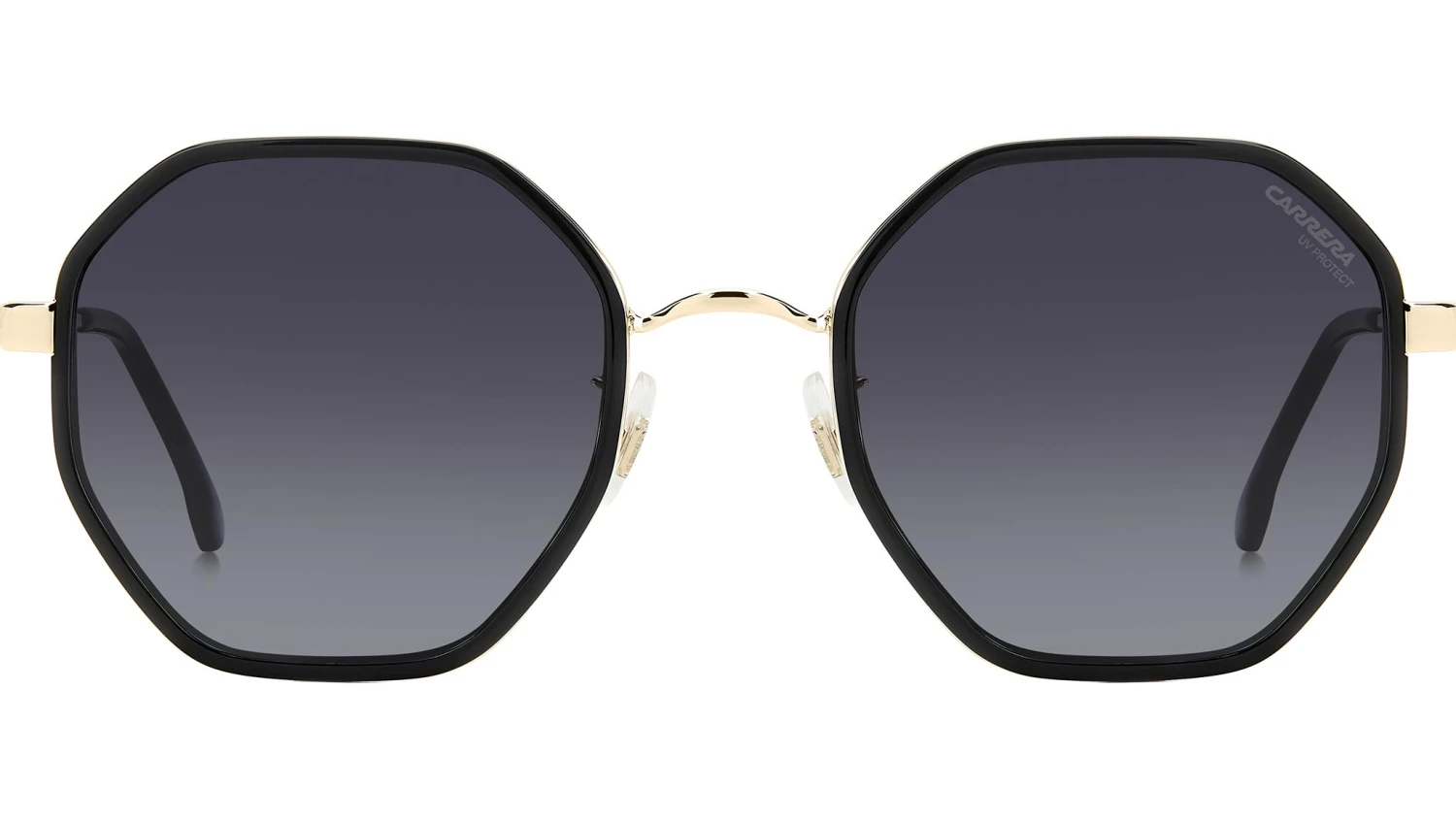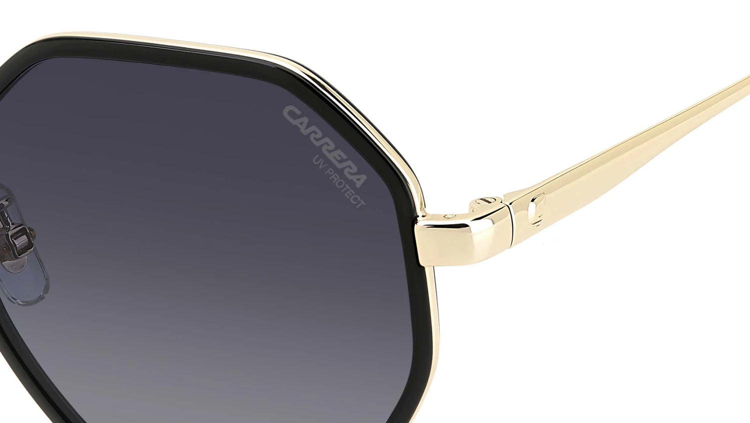 Carrera sunglasses model 3029/S color code 807 9O Black. Eccentric but refined and timeless, as only Carrera can, these sunglasses for women will outlast seasonal trends. Their fine aesthetics and quality can be seen in the front: the delicately octagonal shape is stunning, and the two-material construction (metal and acetate) is refined. The option to fit the frames with prescription sun lenses is just one more reason to flaunt these glasses on any occasion.
