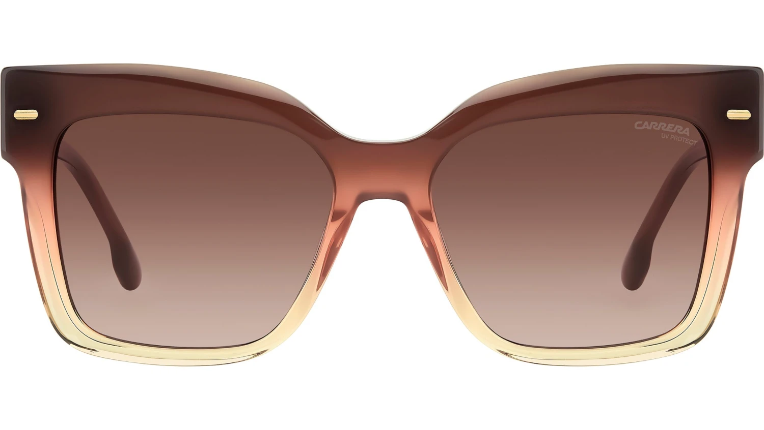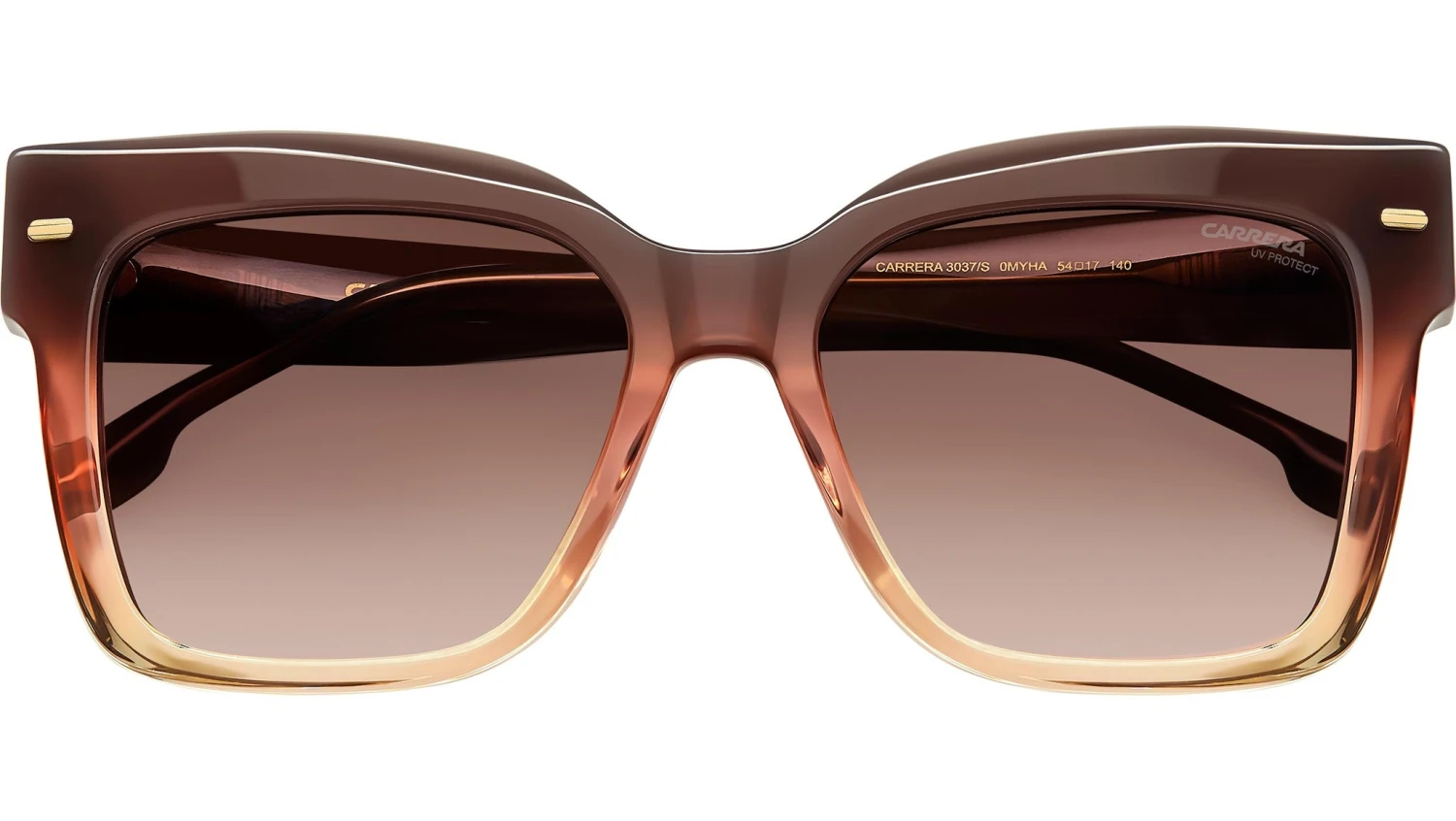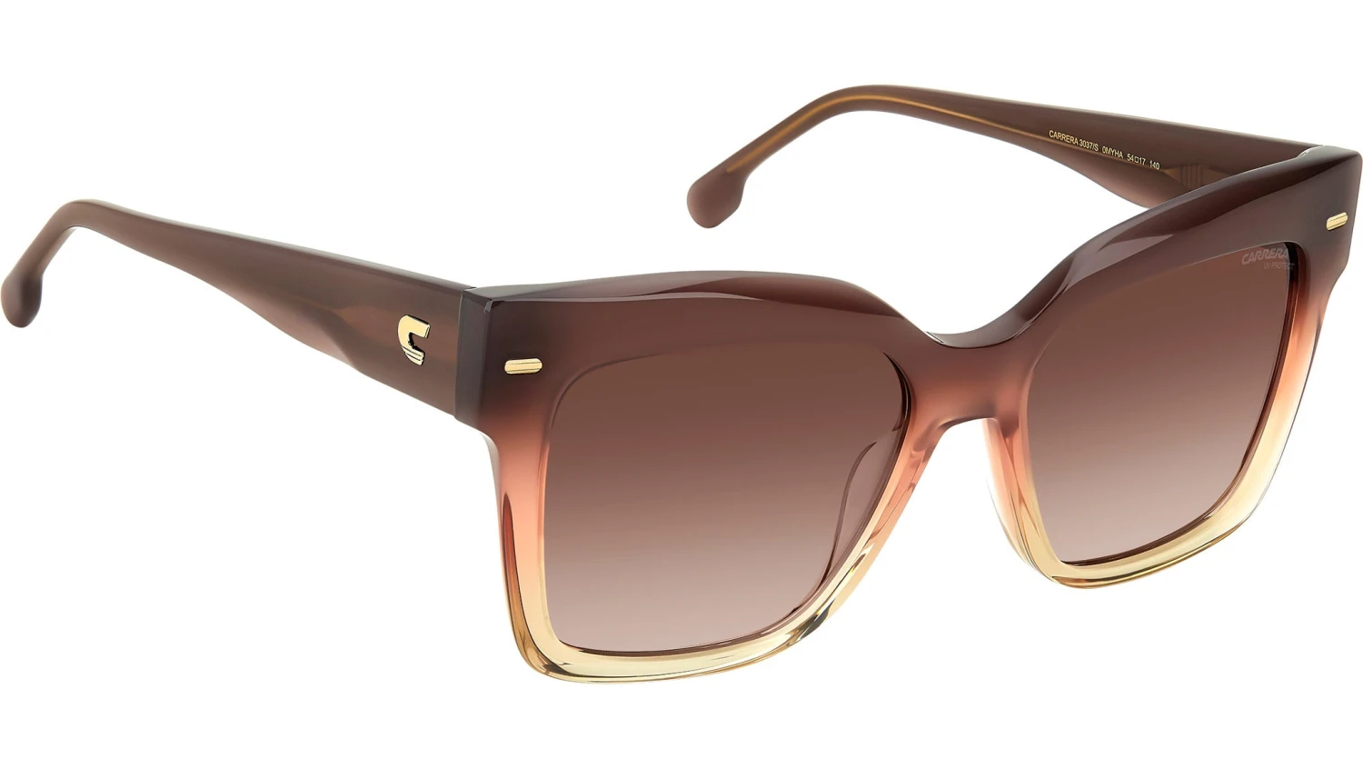 Carrera 3037/S 0MY HA sunglasses for women, featuring brown shaded beige squared acetate frame and brown shaded lenses. These Carrera sunglasses for women are an ode to refinement, constructed in acetate and characterised by maxi proportions. The sculpted profiles of the front are noteworthy, and the embossed metal ‘C’ on the temples is distinct. Carrera offers this style in transparent versions, or a version with a colour-gradient front. When fitted with prescription lenses, these glasses can be worn on every occasion; or, for a diva-ready look, mirrored lenses are a sure bet. Brand line: Flag. Style code: 206822. Color code: 0MY HA. Authorized Carrera online reseller. Your glasses will include the original case and accessories and are covered by a 12-month global warranty.