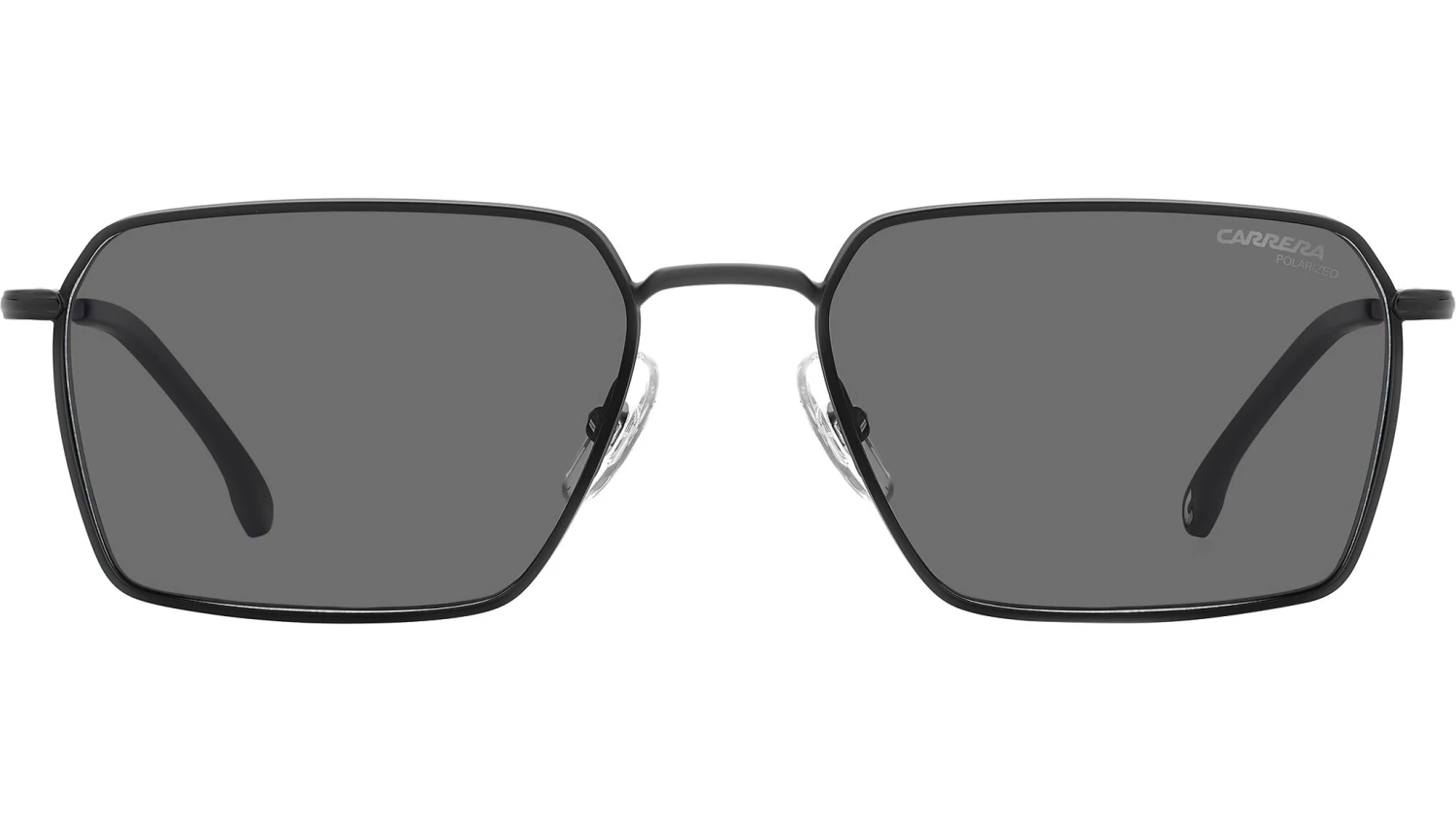 Carrera 356/S 003 M9 sunglasses for men, featuring matte black rectangular metal frame and grey polarized lenses. These Carrera sunglasses are an all-season accessory. Their classic style is easy to wear thanks to the fine rectangular frames in metal. The temples, which come directly from the Carrera archives, are crafted with acetate end tips, including multi-layer versions. Balancing beauty and functionality, this style comes in a polarized and a photochromic version. Brand line: Signature. Style code: 207882. Color code: 003 M9. Authorized Carrera online reseller. Your glasses will include the original case and accessories and are covered by a 12-month global warranty.