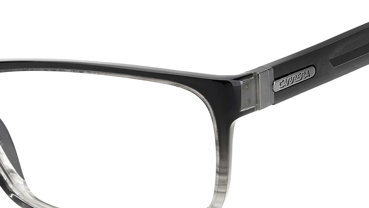 Carrera optical frame model 8890 color code 08A Black Grey. These Carrera eyeglasses ensure a clean, practical look. The acetate structure is solid and durable, designed for everyday use. Well-designed, durable yet flexible hinges make sure this pair of glasses fits all noses, while the rectangular shape is a classic that never goes out of style. Carrera always adds a bold touch, this time with its iconic logo on a metal band near the hinge.