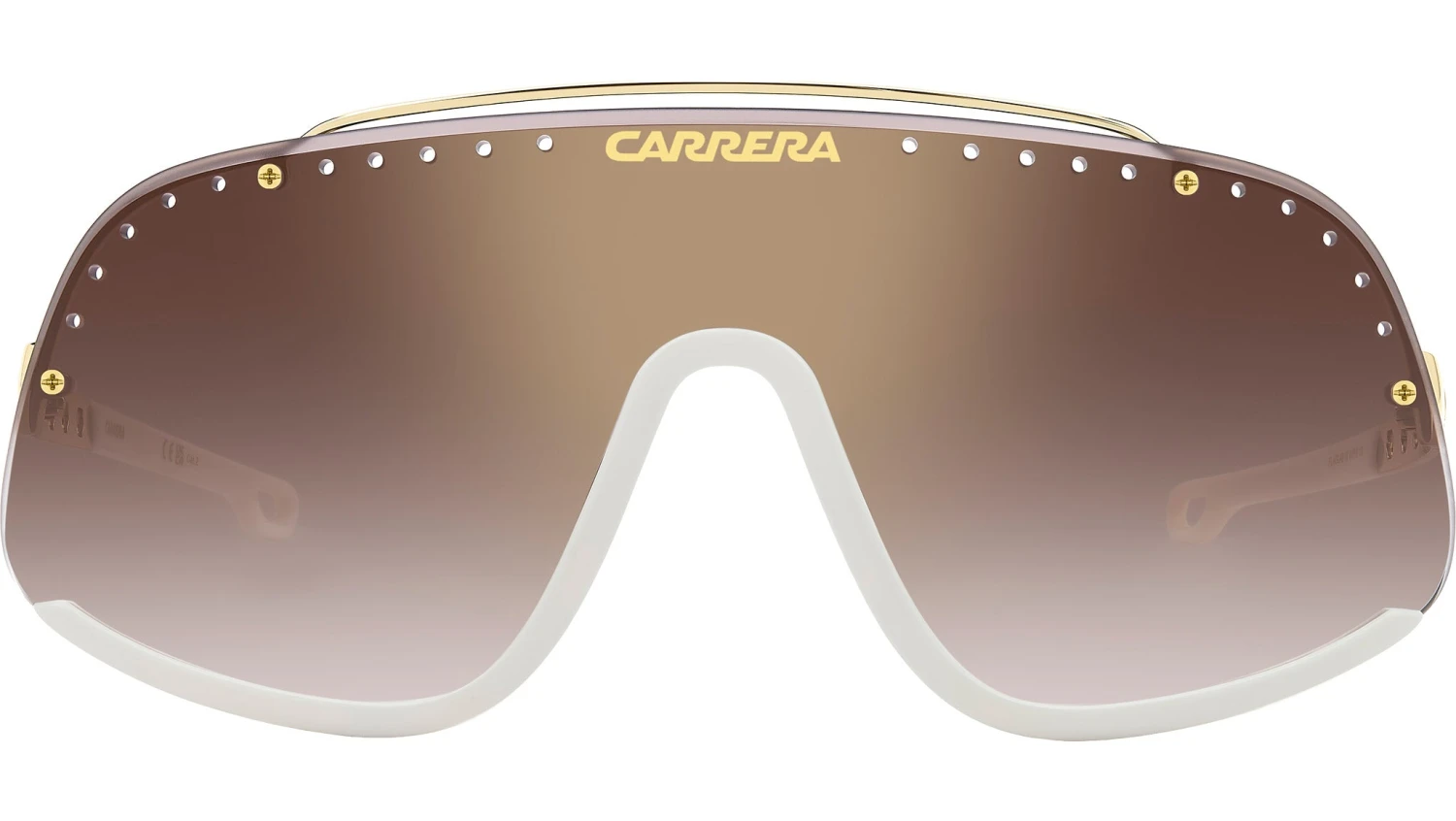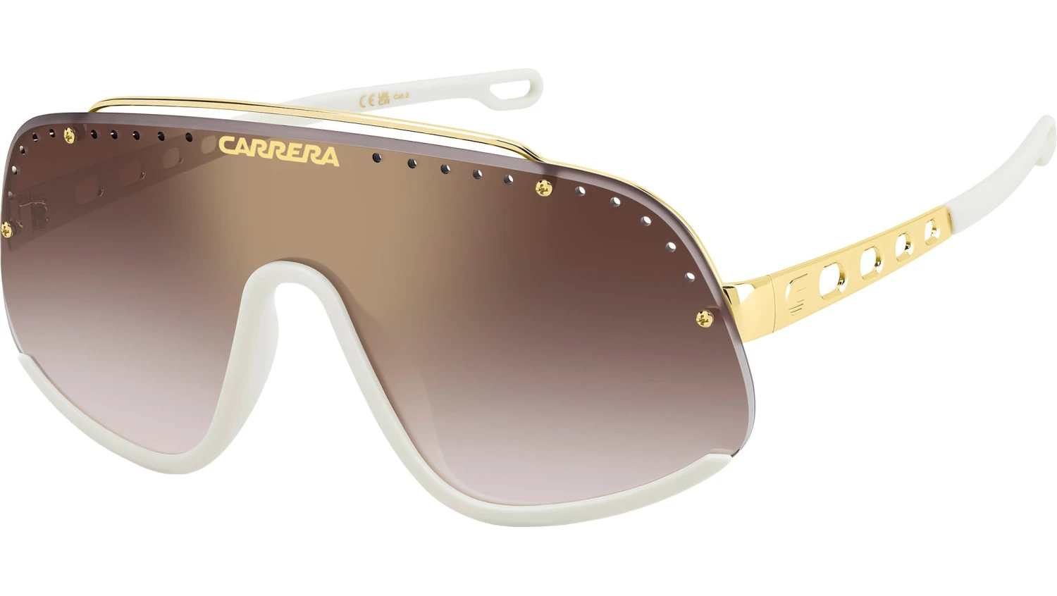 Carrera FLAGLAB 16 VVP YK sunglasses for men and woman, featuring gold ivory shield metal frame and gold mirror on burgundy shaded lenses. Brand line: Flag. Style code: 206725. Color code: VVP YK. Authorized Carrera online reseller. Your glasses will include the original case and accessories and are covered by a 12-month global warranty.