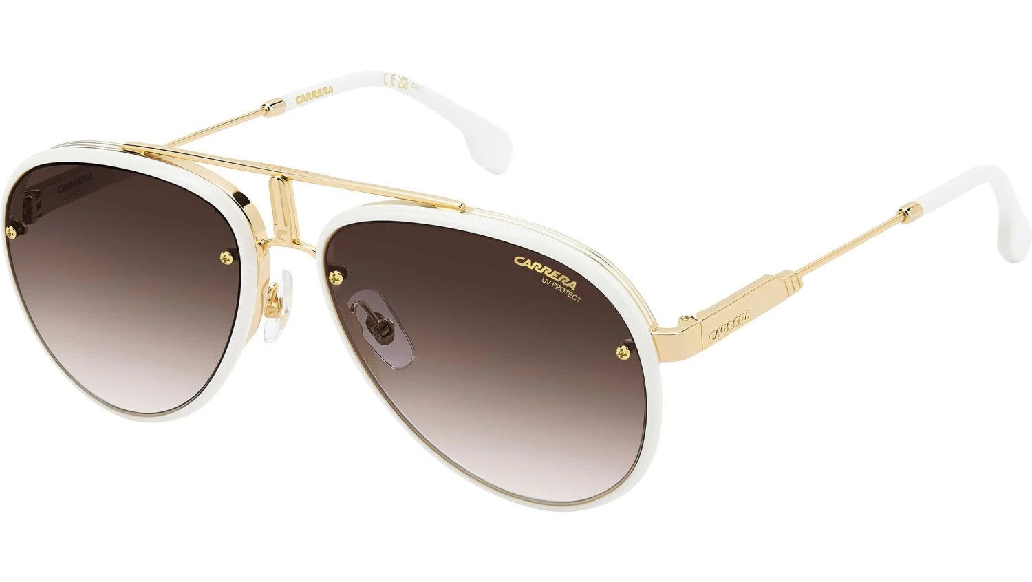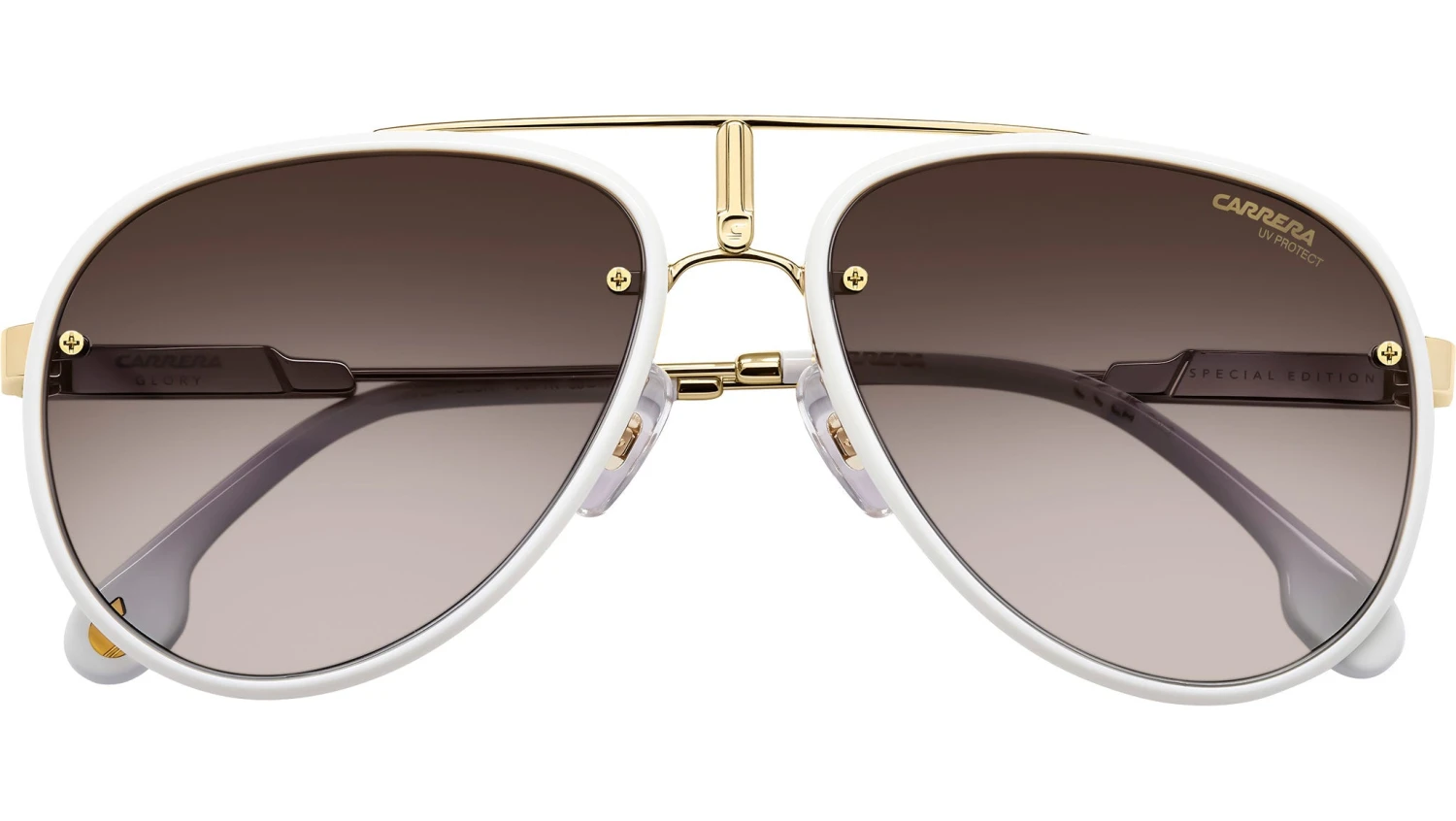 Carrera CARRERA GLORY VVP YK sunglasses for men and woman, featuring gold ivory pilot metal frame and gold mirror on burgundy shaded lenses. Brand line: Flag. Style code: 201034. Color code: VVP YK. Authorized Carrera online reseller. Your glasses will include the original case and accessories and are covered by a 12-month global warranty.