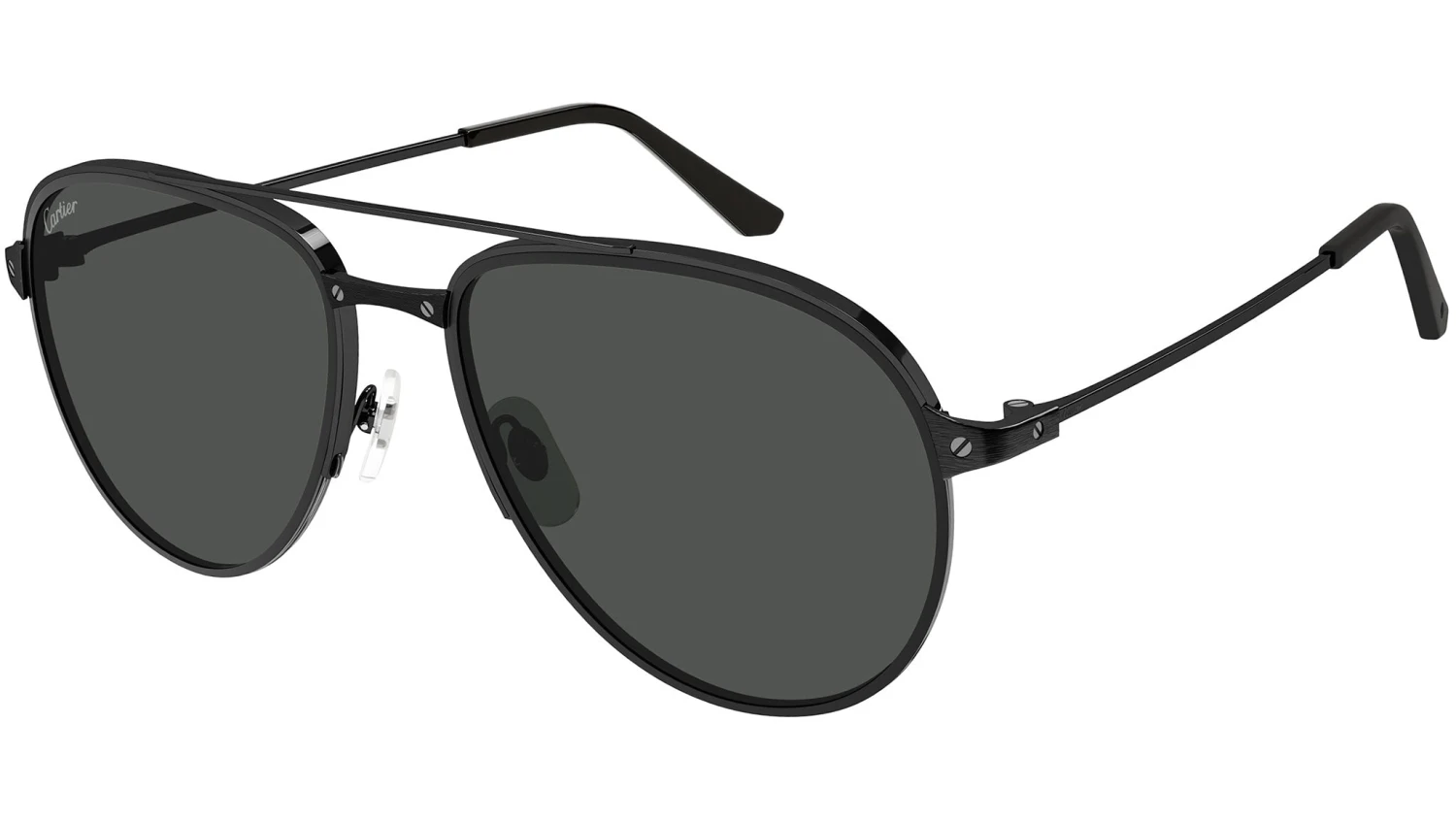 Cartier Core Range sunglasses collection model CT0325S 009 featuring smooth and brushed black PVD finish frame and black lens.