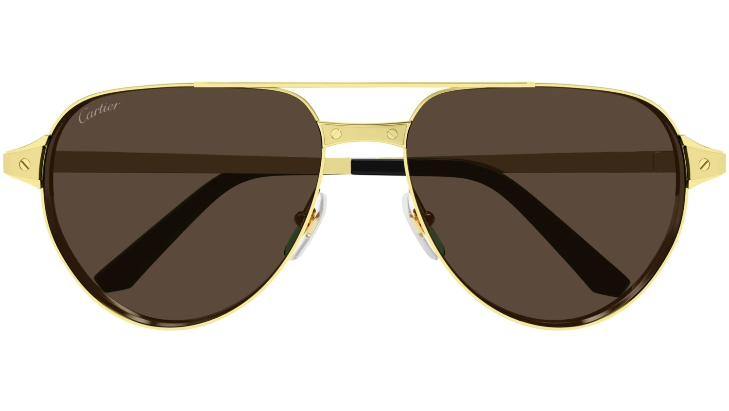 Cartier Exception sunglasses model CT0425S aviator metal frame color code 003 smooth pale finish with brushed pale inserts with gold temple and brown polarized lens.