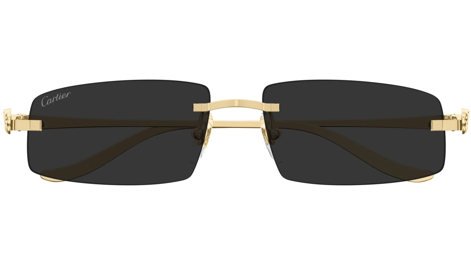Cartier Core Range sunglasses model CT0505S rectangle metal frame color code 001 smooth golden finish with gold temple and grey lens.