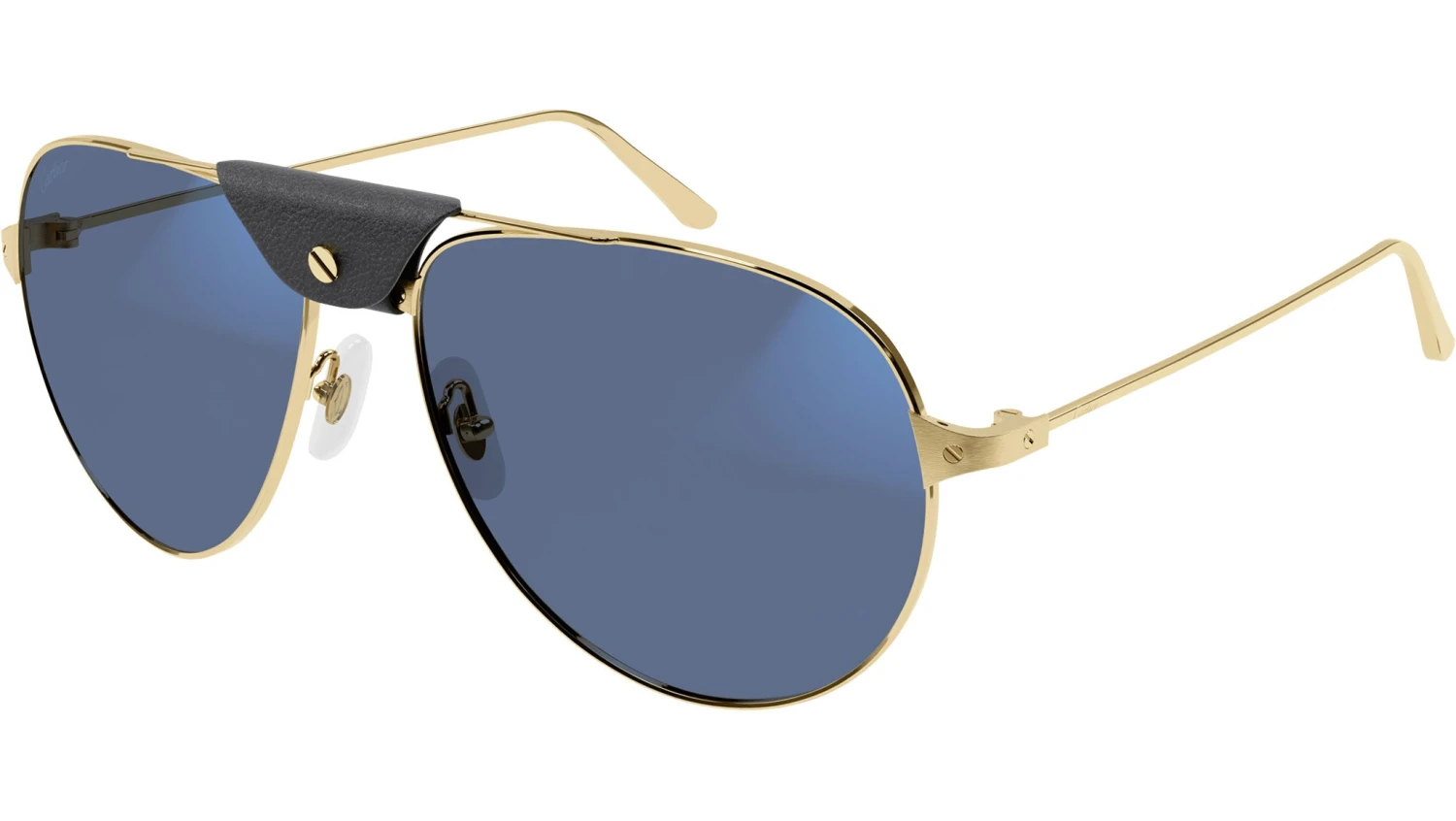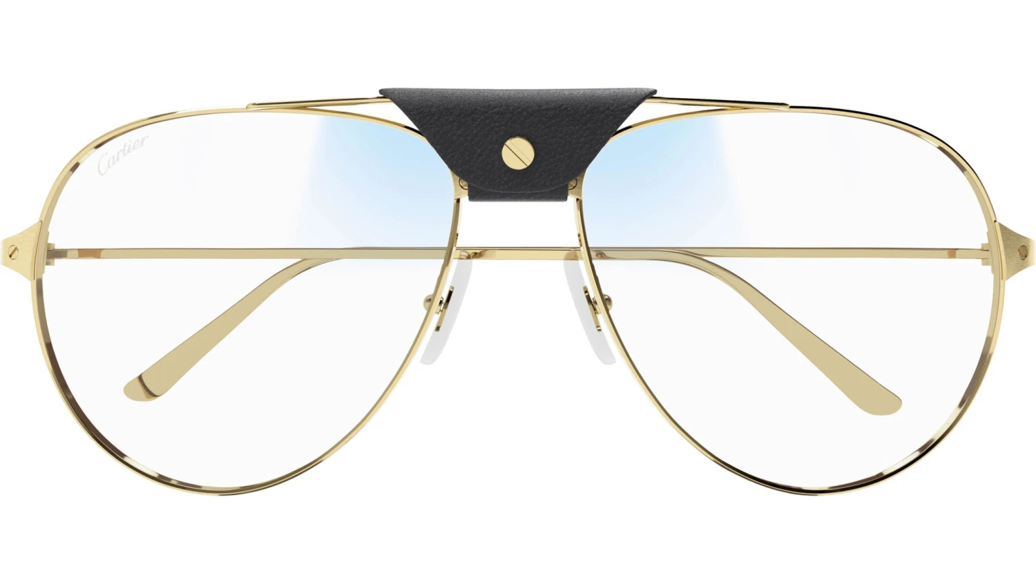 Cartier 0038S 017 sunglasses with smooth golden finish frame and clear to blue photocromic + AR blue reducer lens.