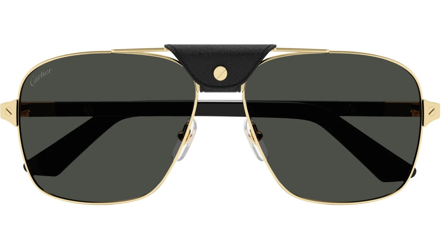 Cartier Exception sunglasses collection model CT0389S 001 featuring smooth golden finish frame and grey polarized lens.