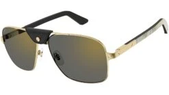 Cartier Exception sunglasses collection model CT0389S 003 featuring smooth golden finish frame and grey polarized with a golden flash lens.