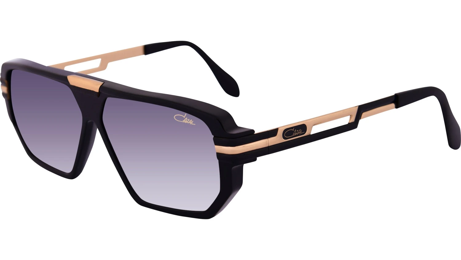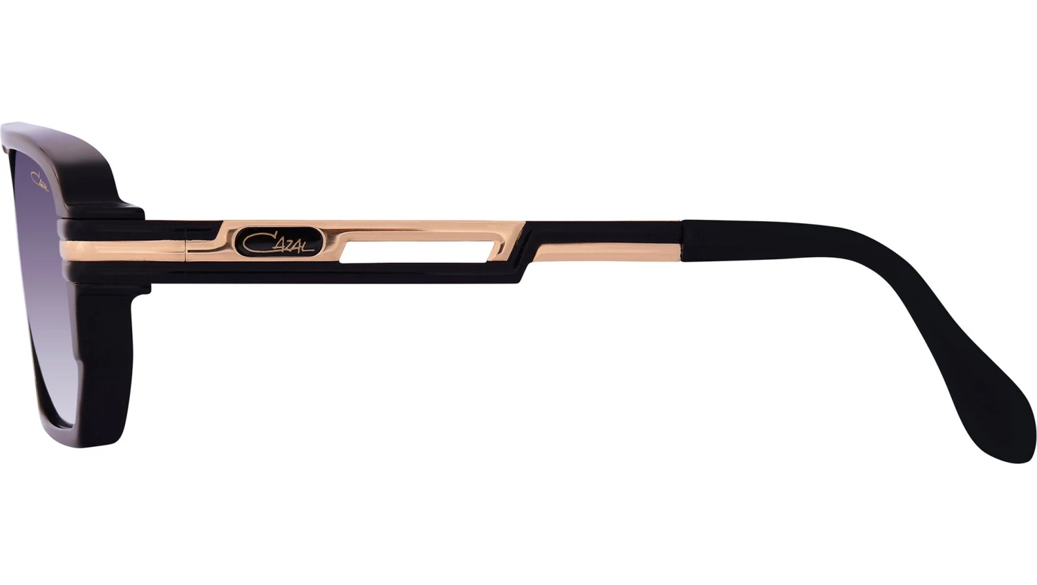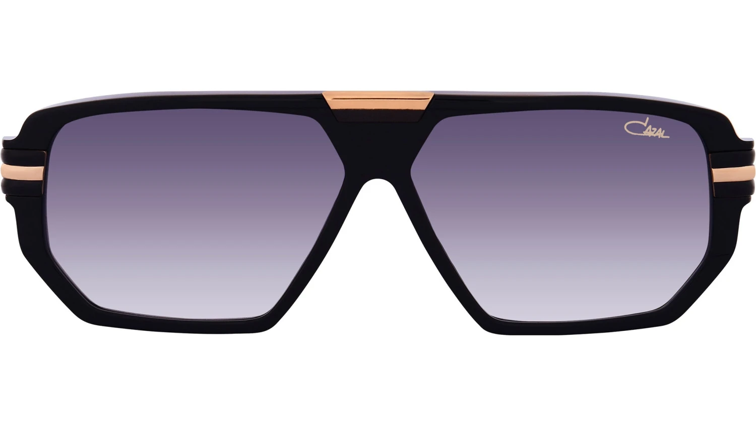 Cazal Eyewear aviator sunglasses model 8045 color code 001 in black and gold, crafted in high quality acetate, featuring grey gradient CR-39 lens.
