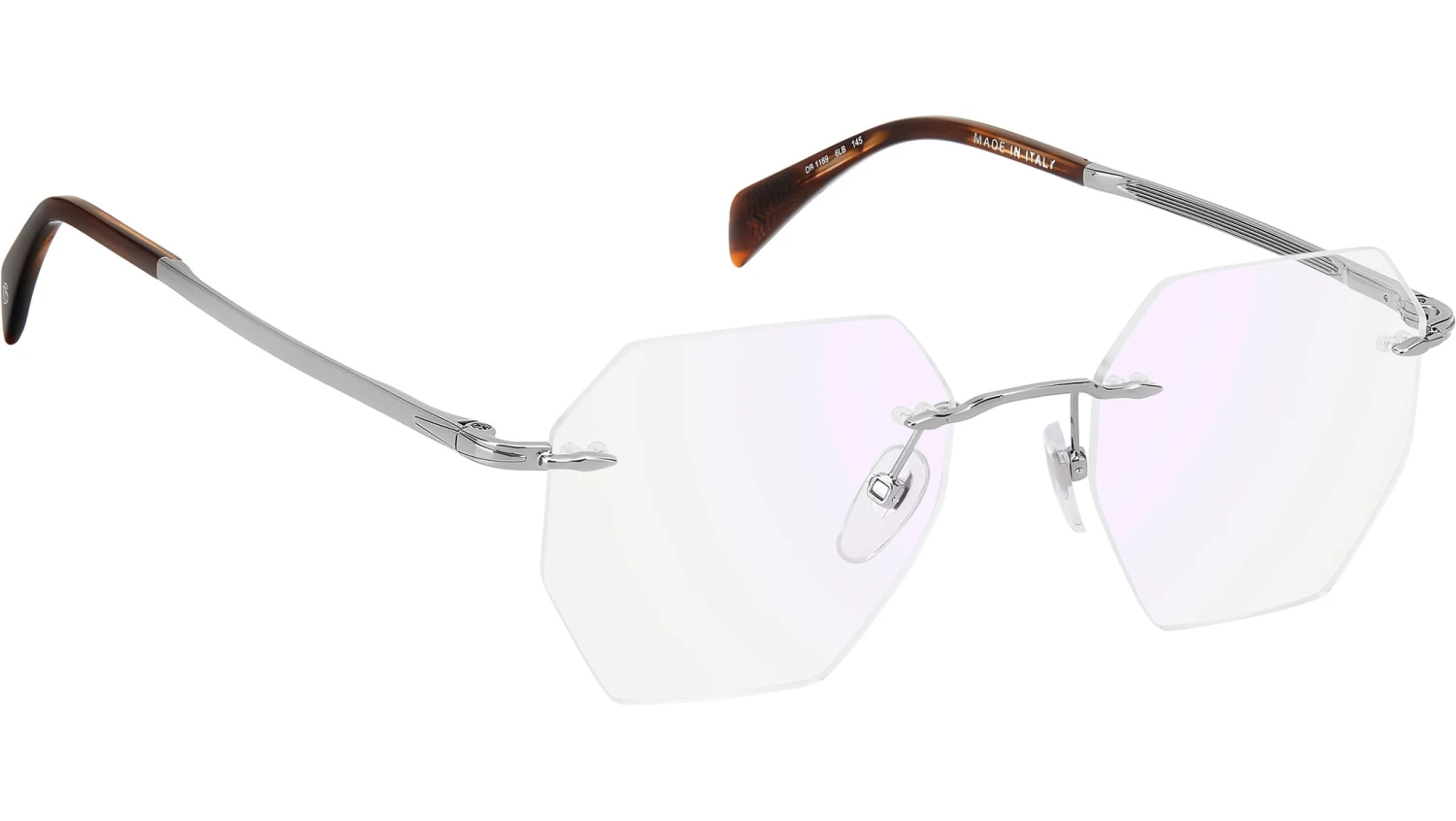 David Beckham DB 1189 6LB glasses for men, featuring ruthenium rectangular metal frame and blue mirror demo lens. These Eyewear by David Beckham rimless optical frames cater to men seeking both elegance and functionality without compromise. The minimalist metal structure embodies lightness and ensures a clean and always-impeccable look. Their comfort is accentuated by meticulous details: adjustable nose pads, ergonomic end tips in acetate, and flexible hinges. The must-have iconic Talisman is seen on the temples, a symbol of courage, protection and liberty, a personal amulet and expression of the values of the brand. Brand line: Timeless Icons. Style code: 109296. Color code: 6LB. Authorized David Beckham online reseller. Your glasses will include the original case and accessories and are covered by a 12-month global warranty.