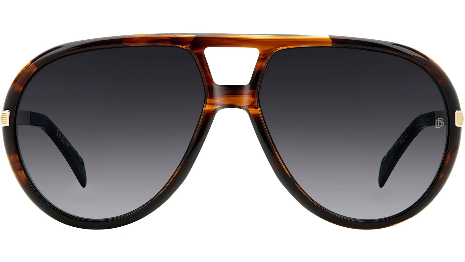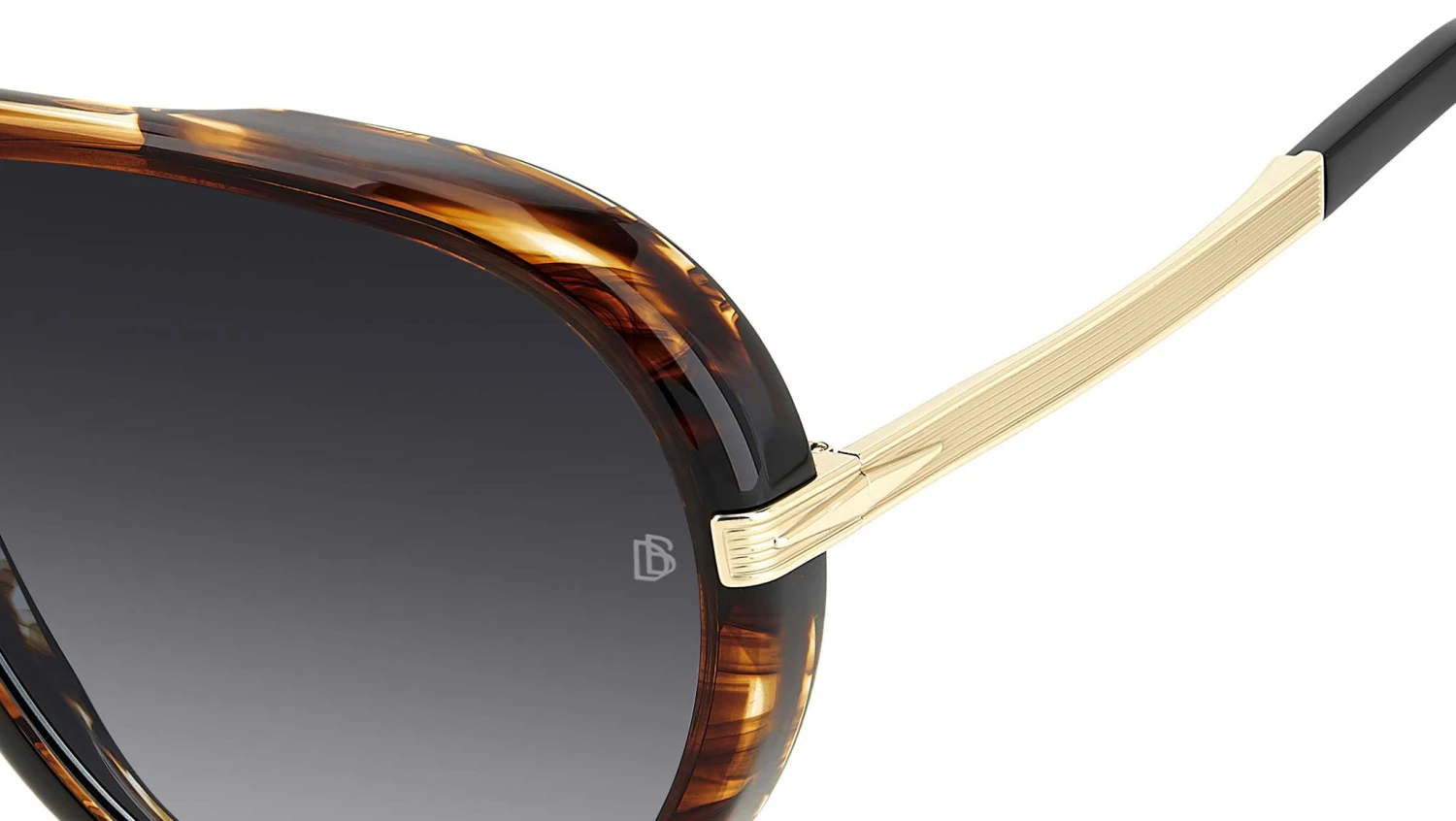 David Beckham DB 99/VOYAGER HQZ 9O sunglasses for men, featuring brown horn gold pilot acetate frame and dark grey shaded lenses. Inspired by David Beckham’s personal favourites and his passion for motorcycles, these sunglasses embody his signature sophistication. With an oversized acetate front and a striking aviator shape featuring lateral spoilers and a double bridge, they make a bold statement. The option to fit the frames with prescription sun lenses ensures that they’re the perfect accessory for every occasion, whether you’re travelling for work or leisure. Available in versions with mirrored, photochromic, and high-contrast lenses, these shades are designed to elevate any look. Brand line: Style Pioneer. Style code: 207787. Color code: HQZ 9O. Authorized David Beckham online reseller. Your glasses will include the original case and accessories and are covered by a 12-month global warranty.