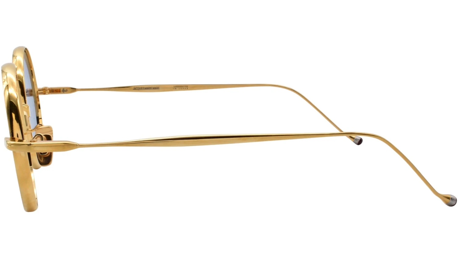 The Diana features a dark gold 100% beta titanium frame harmoniously paired with captivating blue lenses. The custom dark gold hidden hinge seamlessly integrates with burgundy epoxy temple tips, while the custom nose pad boasts a logo and meticulous hairline engraving. The azure 2 base lenses are enhanced with backside anti-reflective treatment, ensuring optimal visual clarity.