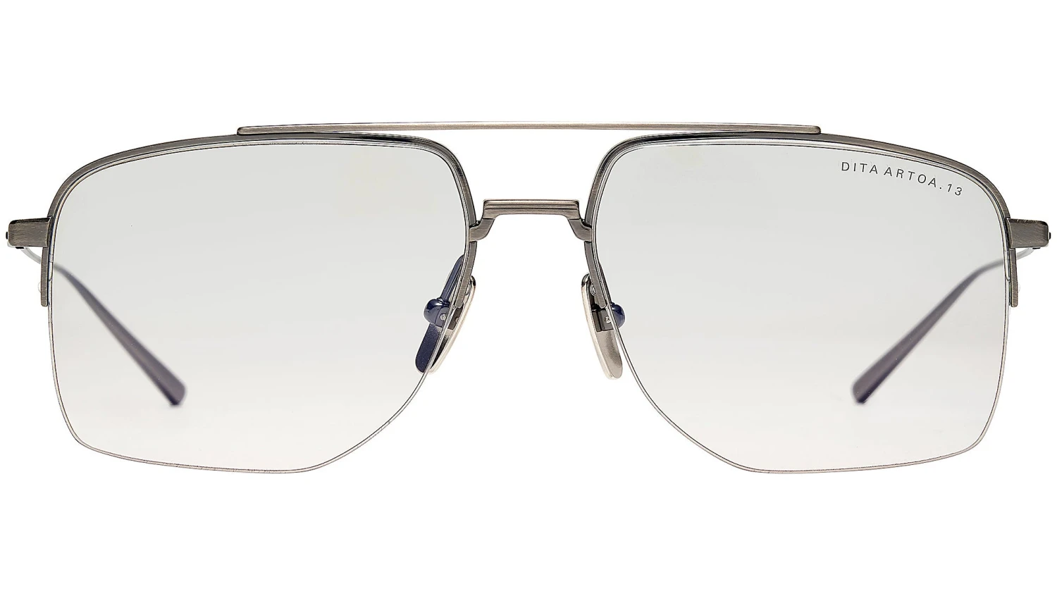 The DITA Artoa.13 refines the navigator silhouette through minimalist precision, continuing the Artoa-Series legacy of sculpted simplicity. Crafted from ultra-lightweight Japanese titanium, this sleek half-rim frame emphasises architectural clarity while minimising visual weight. A double-pressed line detail along the lens rim adds subtle depth, underscoring the meticulous craftsmanship that defines the collection. Lightweight titanium temples are sculpted for seamless comfort and finished with recessed enamel-detailed tips, striking a balance between elegance and function. Custom titanium nose pads with diamond-pressed detailing ensure a refined, tailored fit. Equipped with lenses offering 100% UVA and UVB protection and an anti-reflective coating, the Artoa.13 exemplifies DITA’s mastery of understated luxury, handcrafted in Japan.