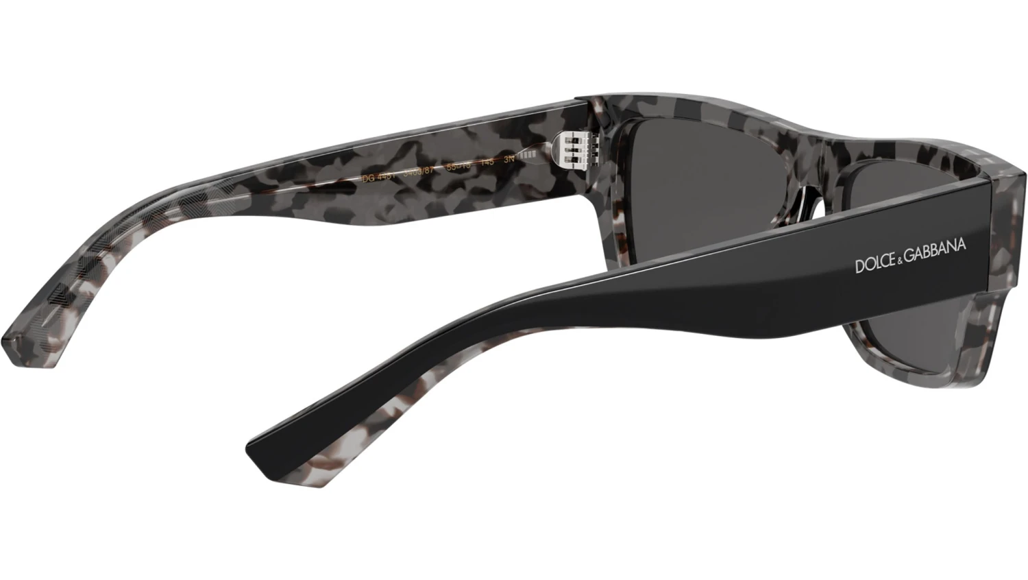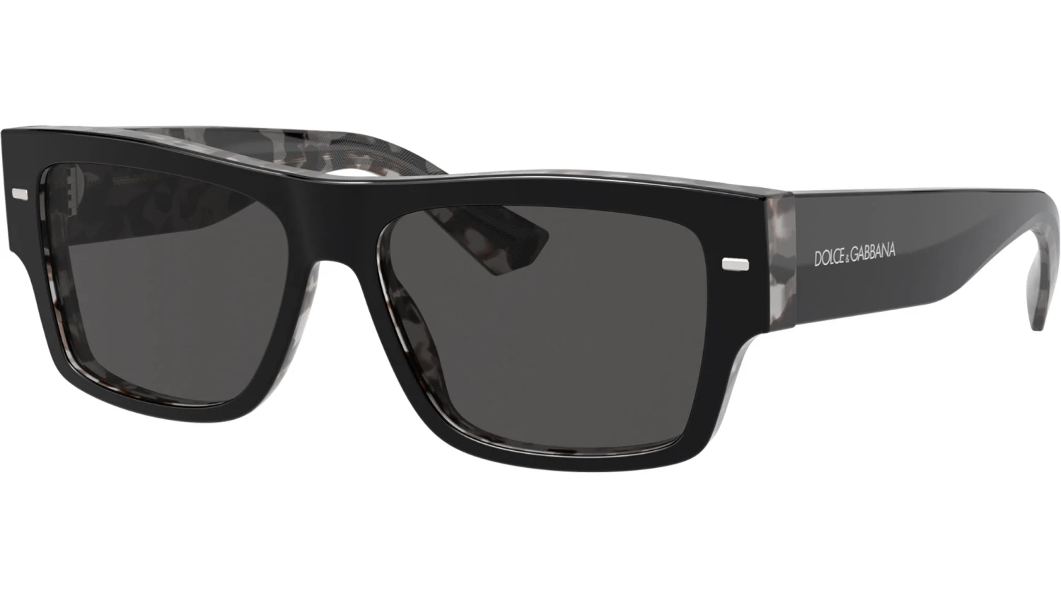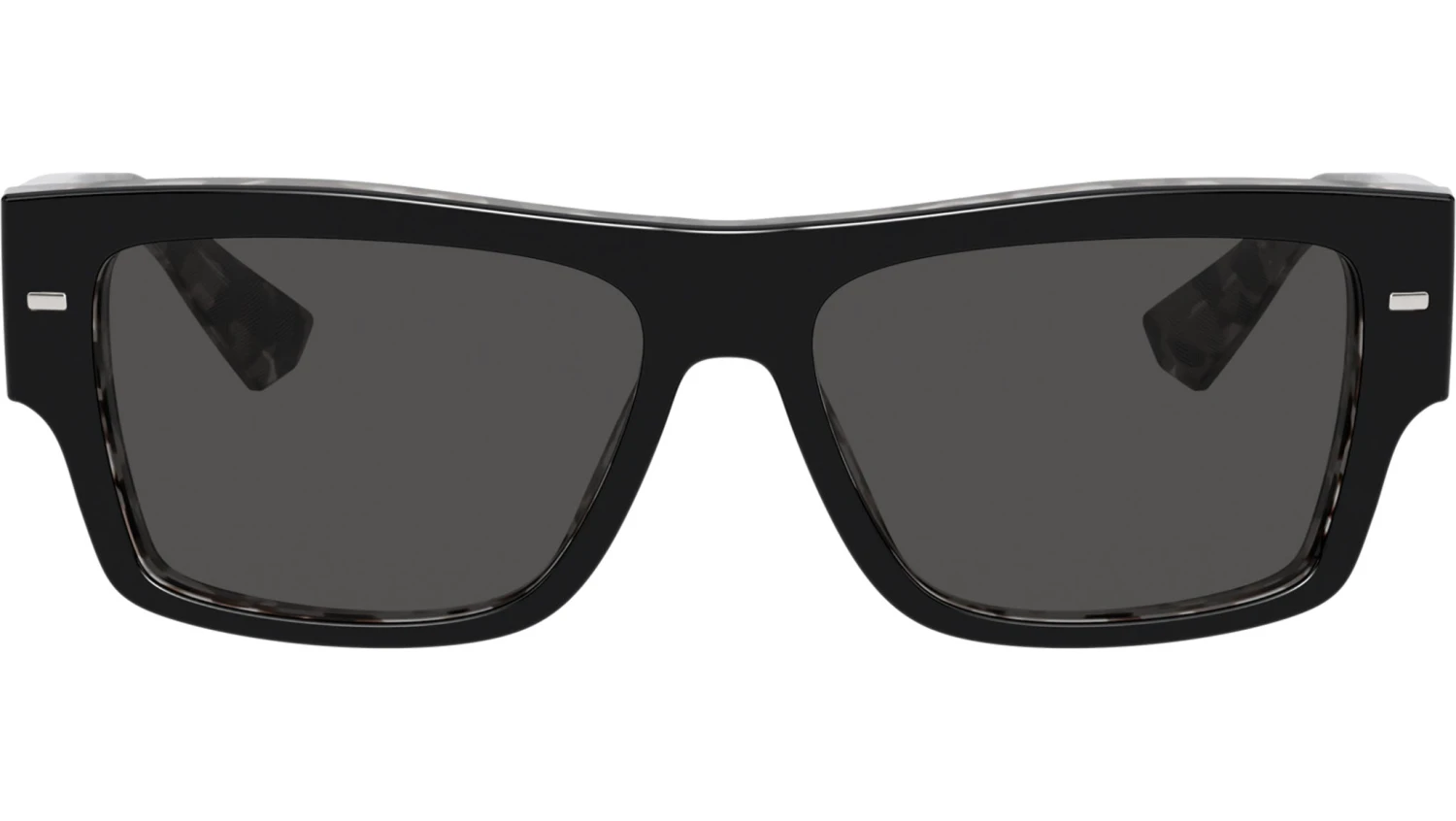 Dolce&Gabbana rectangle sungasses model DG 4451 from Dna eyewear line, color code 340387 black on grey havana acetate frame with dark grey lens.