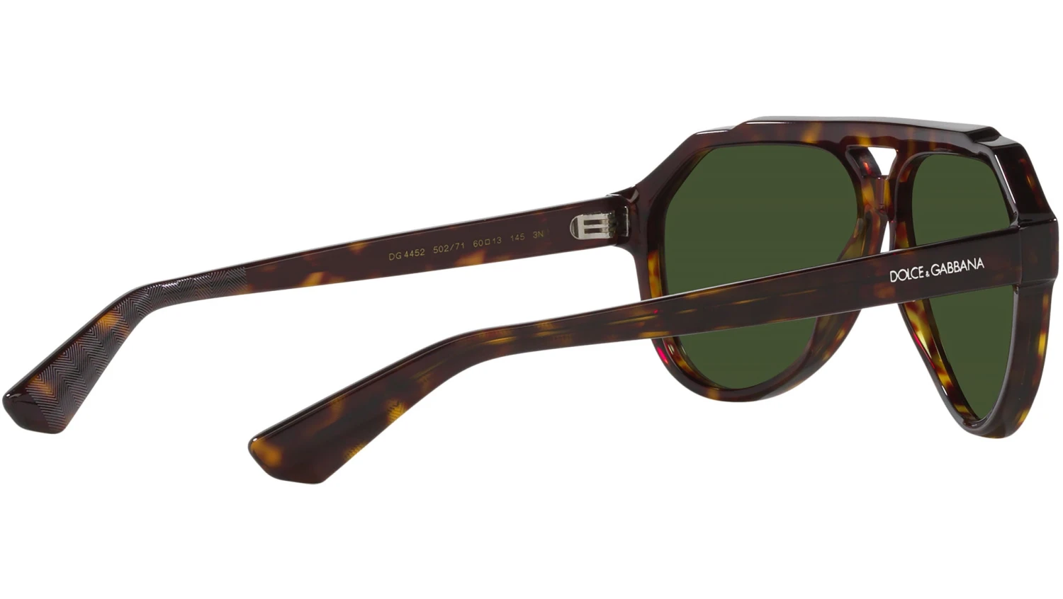 Dolce&Gabbana aviator sungasses model DG 4452 from Dna eyewear line, color code 502/71 havana acetate frame with dark green lens.
