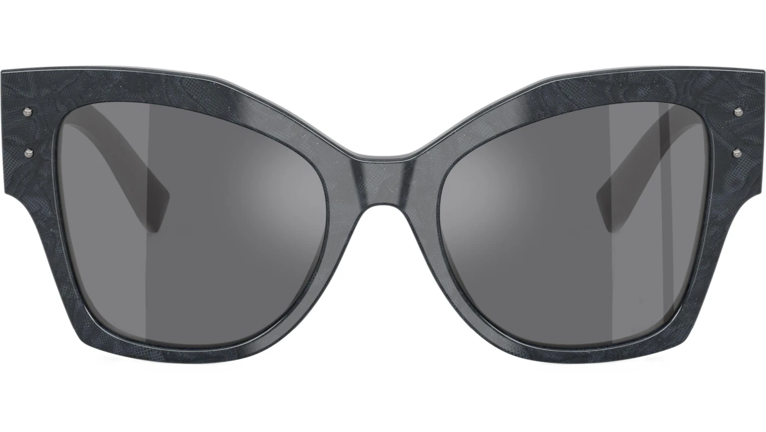 Dolce & Gabbana sunglasses for for women model 4478 featuring grey lace full rim acetate frame and base 4 dark grey flash silver lenses. High bridge fit. Frame line: Dna. Brand code: 0DG4478. Color code: 34416V. Authorised Dolce & Gabbana Online Reseller. Your glasses will come including the original case and accessories and will be covered by 12 month global warranty.