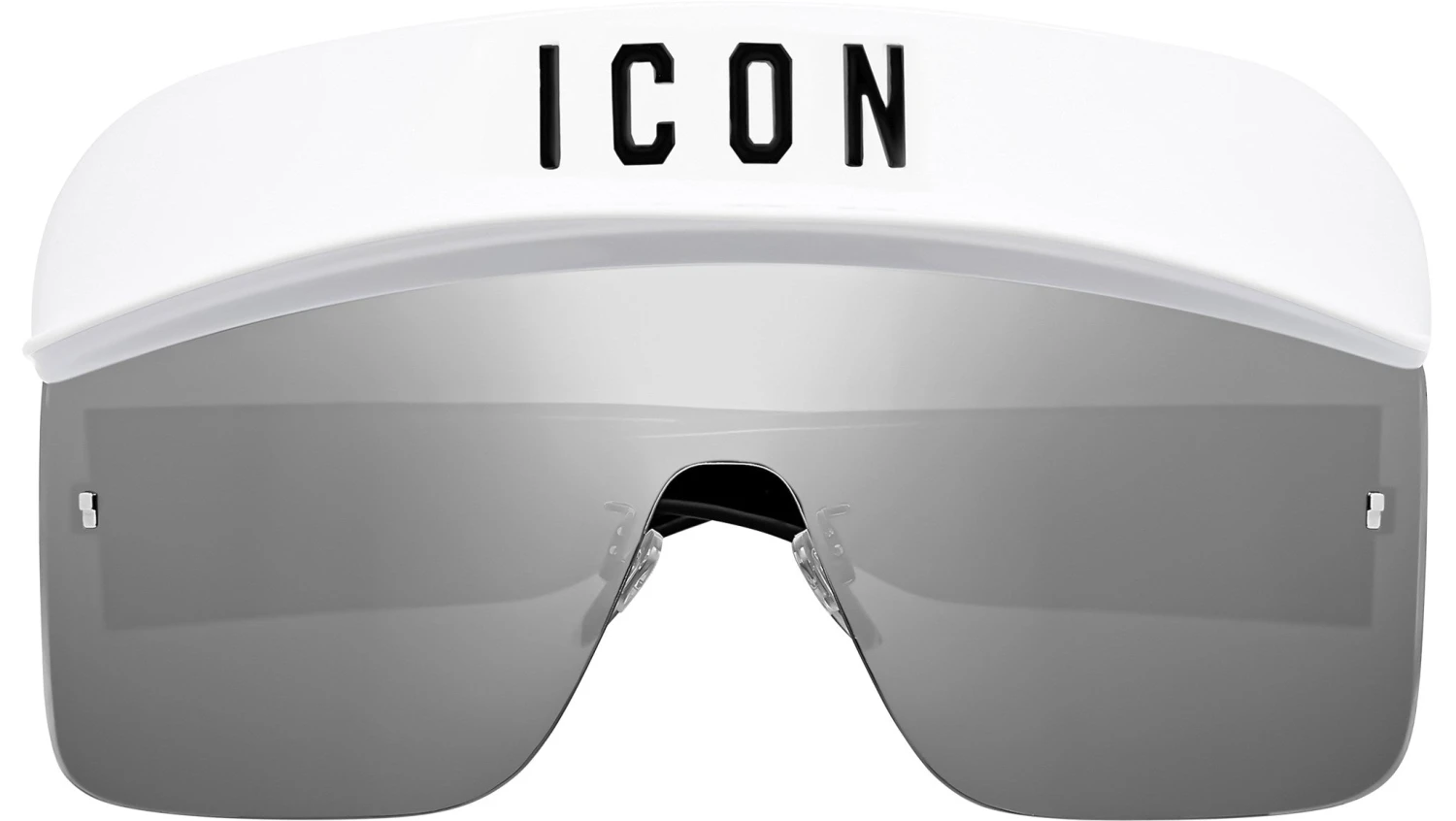 Dsquared2 ICON 0001/S VK6 T4 sunglasses for men, featuring white shield acetate frame and silver mirror lenses. Unquestionably iconic and youthful, these Dsquared2 mask sunglasses with cylindric or sphere lens and iconic trims. An embossed maxi logo on the acetate bi-layer temple and the unmistakable maple leaf on the end tips make the brand immediately recognisable. This original line of Dsquared2 sunglasses embodies inimitable, cool, glamorous style in every detail, an ICON in every sense. Brand line: Icon. Style code: 204948. Color code: VK6 T4. Authorized Dsquared2 online reseller. Your glasses will include the original case and accessories and are covered by a 12-month global warranty.
