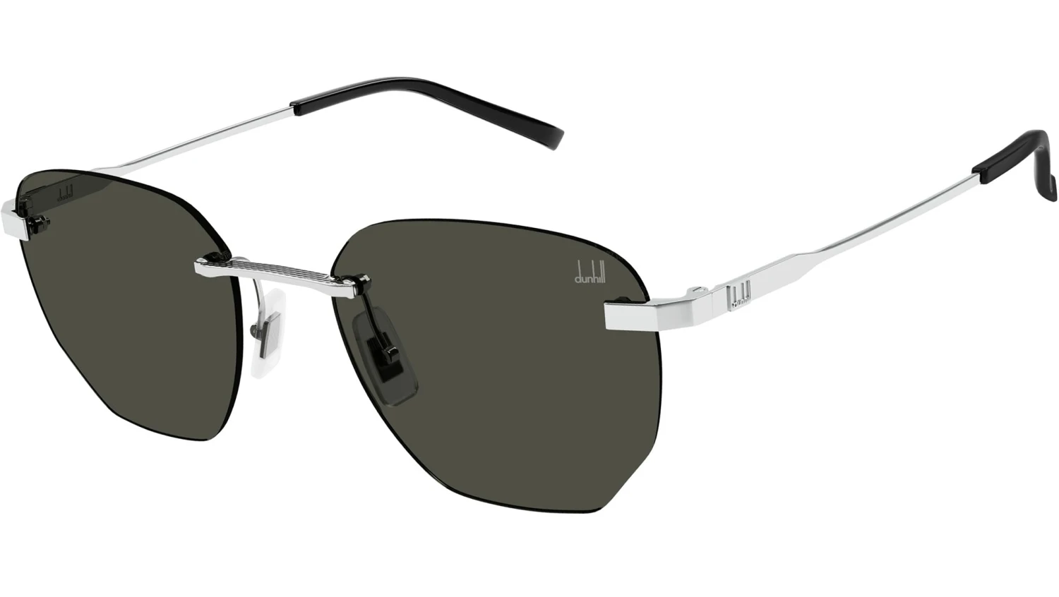 Dunhill sunglasses collection model DU0066S color code 004 featuring shiny silver metal frame and solid grey lens.