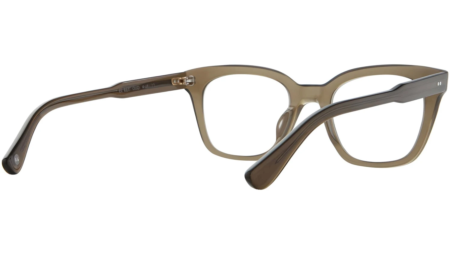 Inspired by the bold and assertive frames worn by Buddy Holly, the El Rey brings a new attitude to the classic cat eye by adding squared off details and sleek temple construction. Cured cellulose acetate frame with nickel silver core wire. CR-39 lenses with AR coating. Five barrel hinges with real rivets. Standard GLCO case