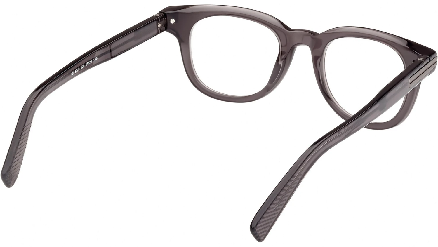 Zegna glasses for men model EZ5279 featuring shiny grey full-rim acetate frame with transparent demo lenses. Brand code: EZ5279. Color code: 020. Authorised Ermenegildo Zegna Eyewear Online Reseller. Your glasses will include the original case and accessories and will be covered by a 12-month global warranty.