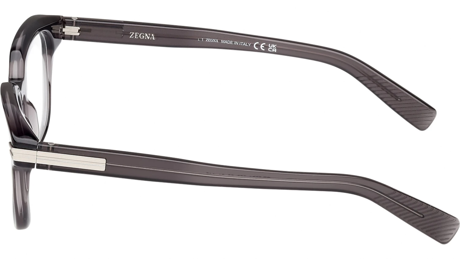 Zegna glasses for men model EZ5304 featuring shiny grey full-rim acetate frame with transparent demo lenses. Brand code: EZ5304. Color code: 020. Authorised Ermenegildo Zegna Eyewear Online Reseller. Your glasses will include the original case and accessories and will be covered by a 12-month global warranty.