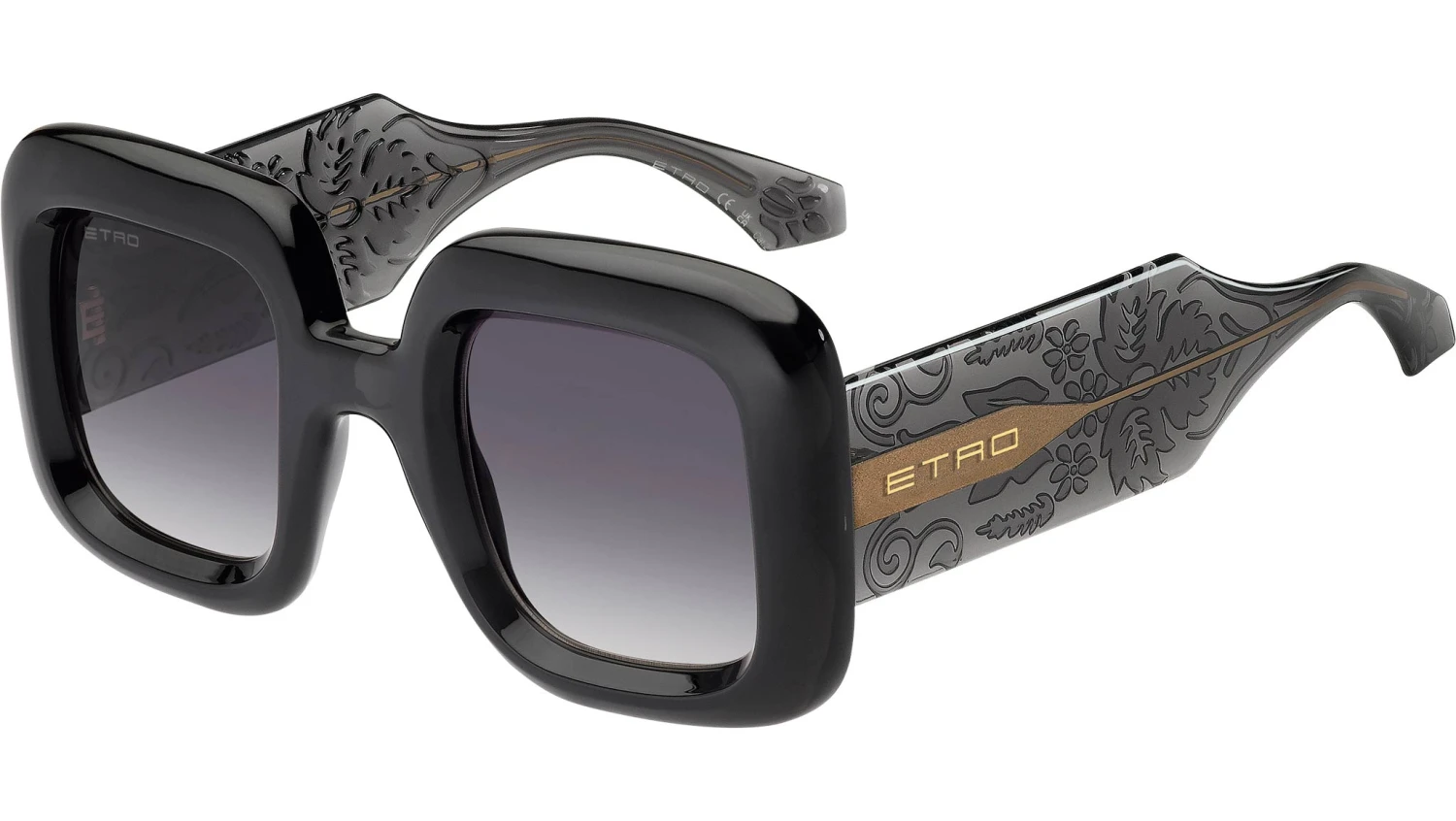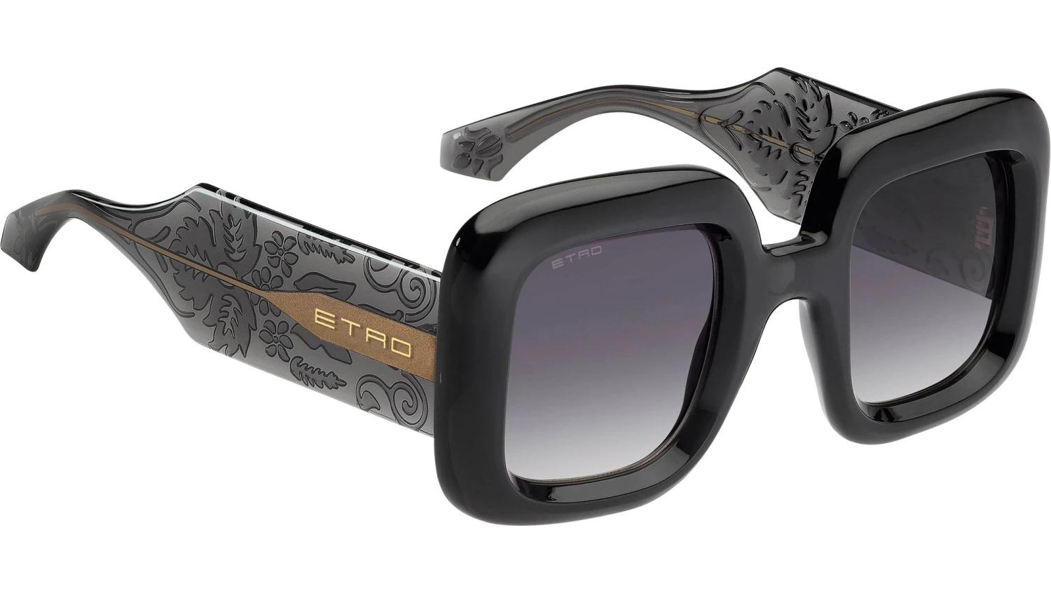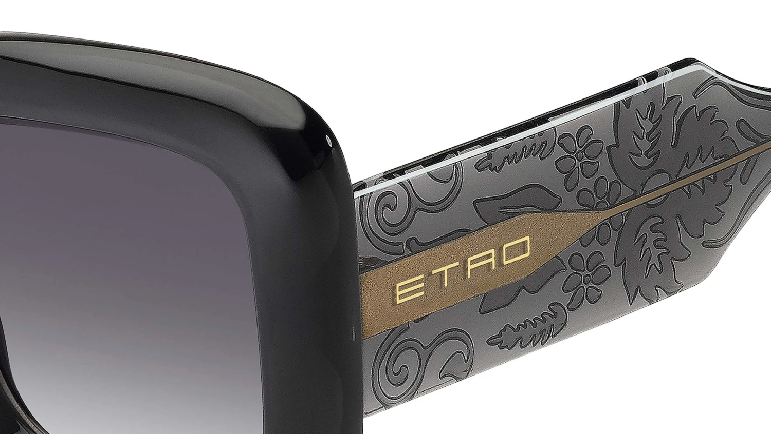 ETRO sunglasses model 0015/S color code KB7 9O grey. Square full rim injection frame for women with dark grey shaded lens. ETRO’s “Paisley” eyewear collection embraces one of the Maison’s most distinctive style codes: the eponymous Paisley pattern. Renowned for its exquisite fabrics, the house has reimagined this timeless motif in a myriad of captivating forms and chromatic expressions; these sunglasses, designed to be lightweight and comfortable to wear, reveal the motif as a sophisticated engraving on the internal part of transparent coloured temples. Precious metal wirecores, iconic end tips and discreet ETRO branding lend a signature finishing touch. Authorised ETRO Eyewear Online Reseller. Your glasses will come including the original case and accessories and will be covered by 12 month global warranty.