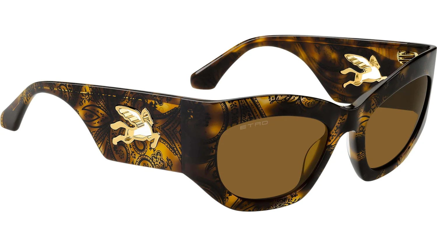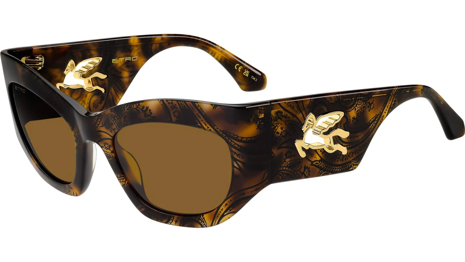 Etro 0074/G/S H7P 70 sunglasses for women, featuring pattern havana rectangular acetate frame and brown lenses. Refined and quintessentially ETRO, these sunglasses make a stunning statement with their bold shape, exquisite construction and the precious Pegaso detail – crafted from a single piece of metal to create an unexpected cutout effect. They’re made from premium acetate developed exclusively for the brand, finished using a milling process, and available in classic black, ETRO’s burgundy, and Paisley-patterned variations that give fresh energy to heritage codes. Brand line: Etromania. Style code: 207796. Color code: H7P 70. Authorized Etro online reseller. Your glasses will include the original case and accessories and are covered by a 12-month global warranty.