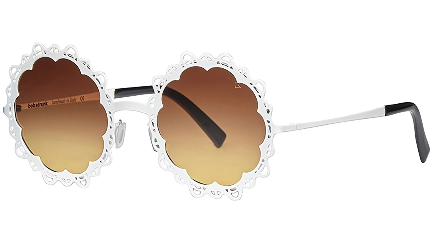 Bobsdrunk Flora/S sunglasses color code 112/S featuring matte white and brown gradient lenses. Care and attention to detail, a high standard in the quality of materials and 100% made in Italy are easily recognised in each Bobsdrunk product. Each model is a perfect combination of aesthetics and functionality, from the moment of conception all the way towards the creation. Through the careful choice of colors, we emphasize the value of every shape.