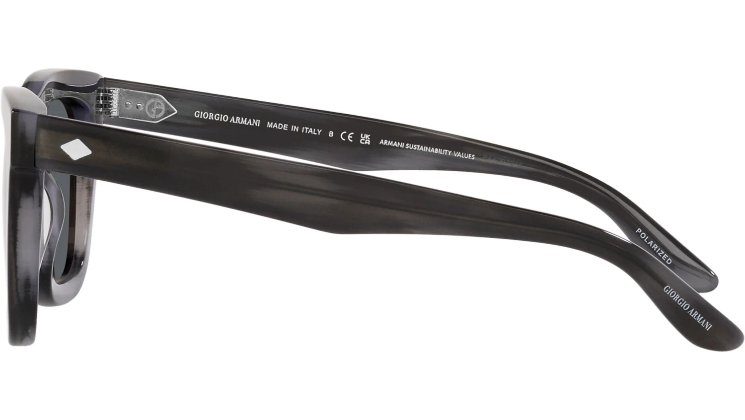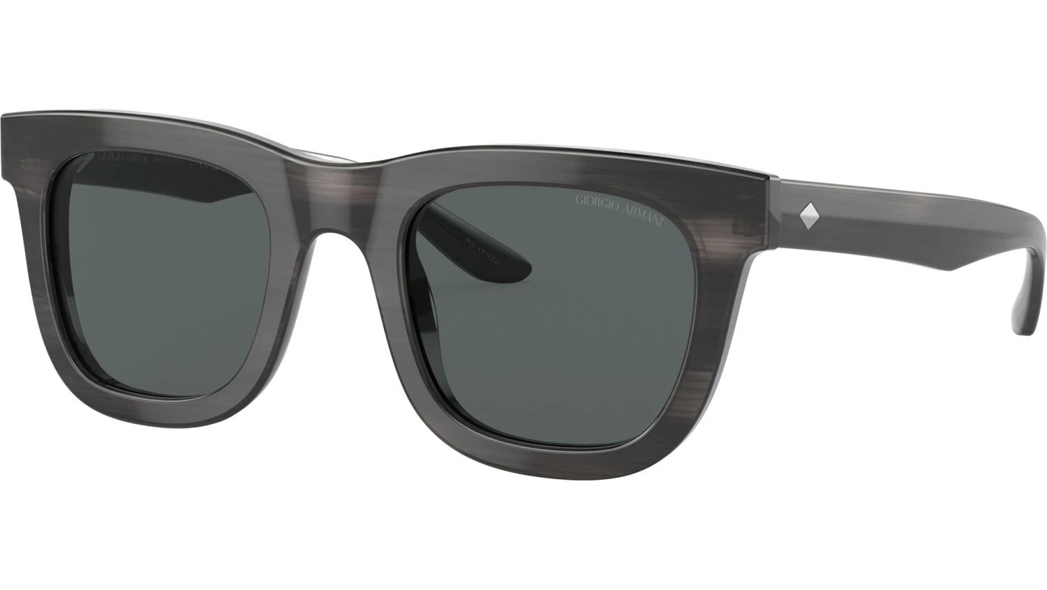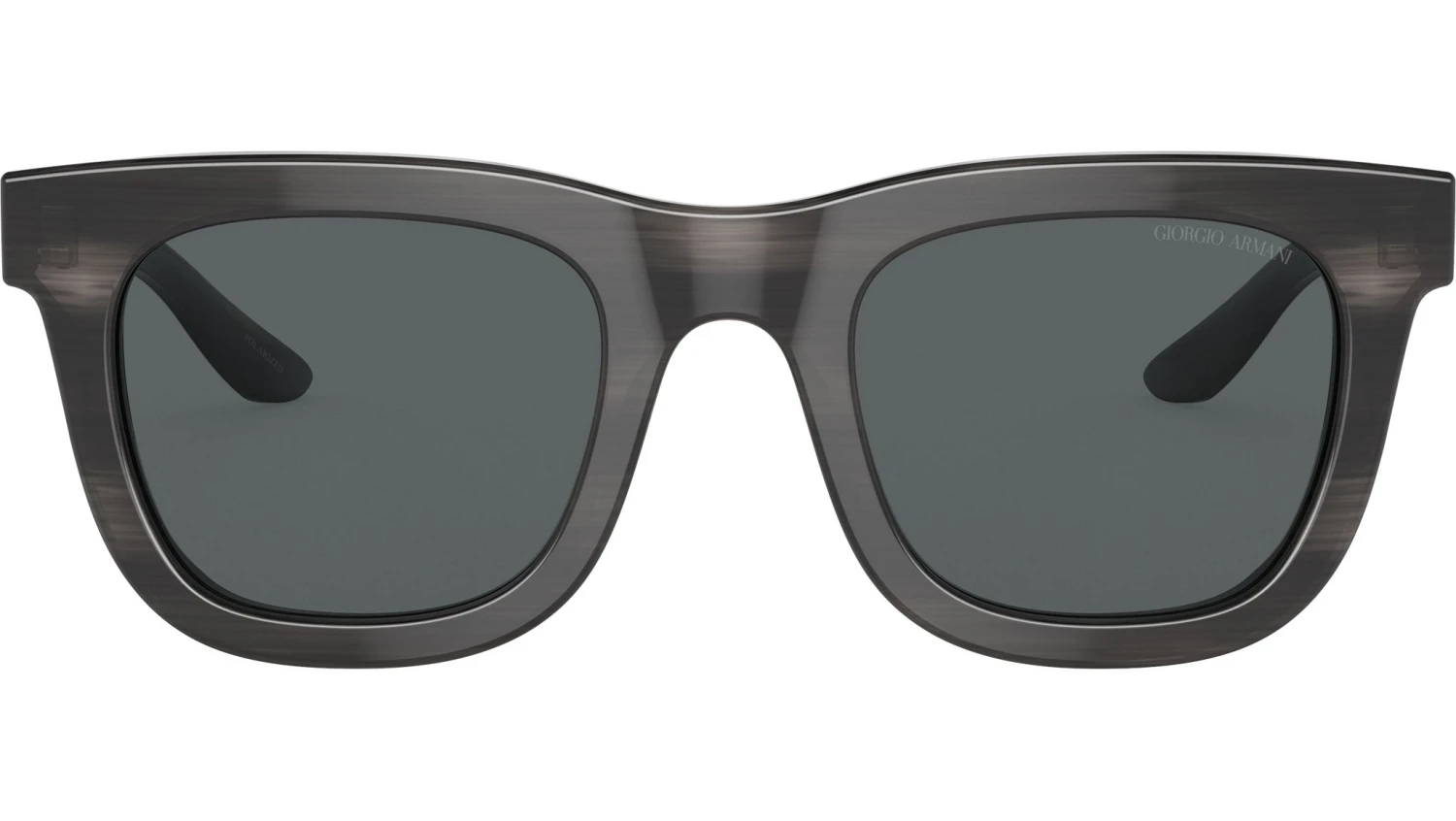 Giorgio Armani sunglasses for men model AR 8171 featuring striped grey full rim acetate frame and base 4.25 curve polarized dark grey lens. High Bridge Fit. Frame line: Runway. Brand code: AR8171. Color code: 5964P2. Authorised Giorgio Armani Online Reseller. Your glasses will come including the original case and accessories and will be covered by 12 month global warranty.