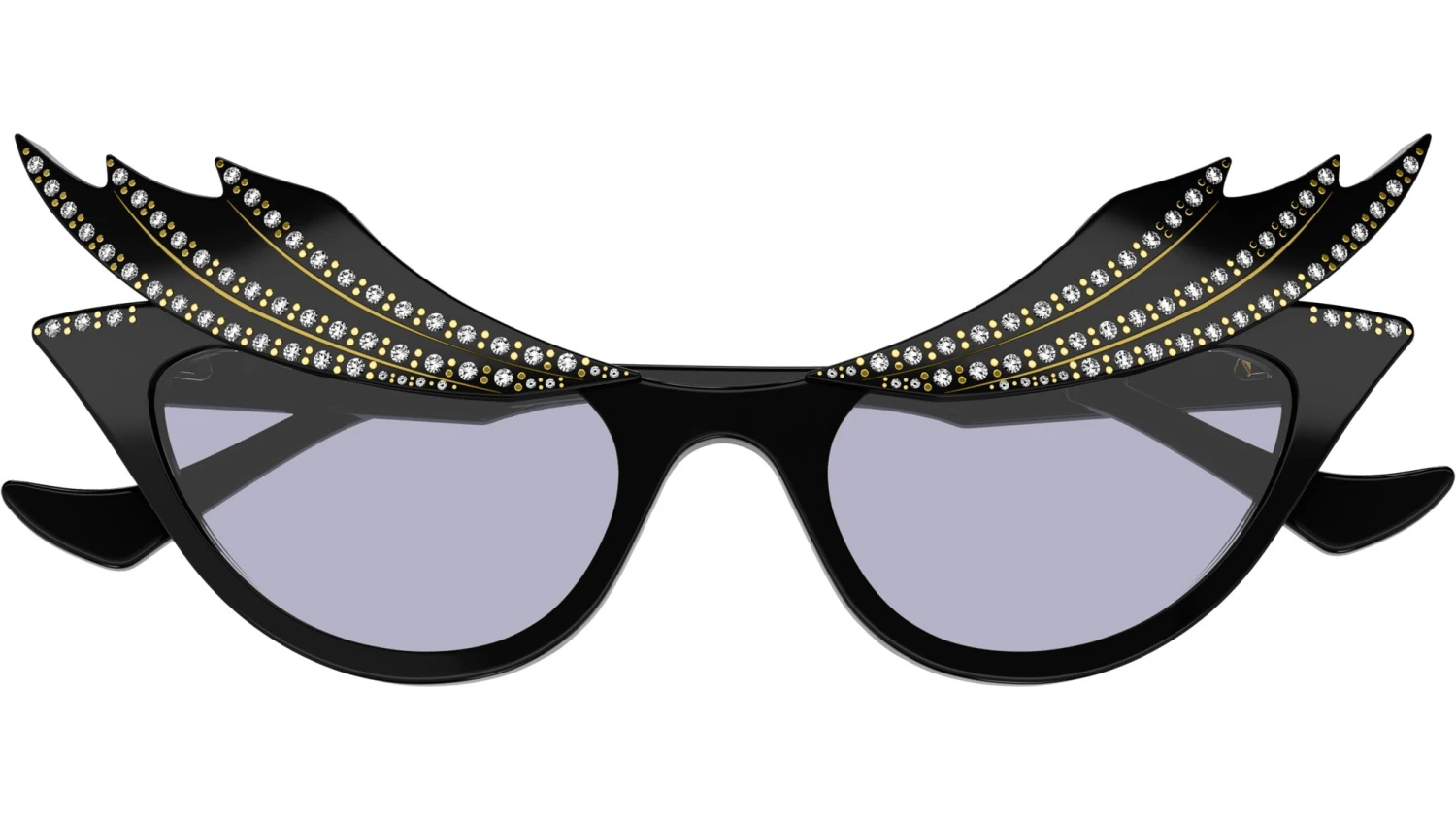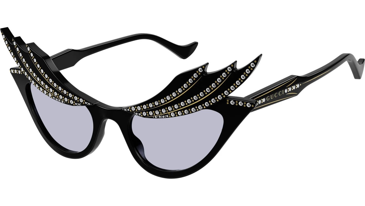 Gucci Fashion Inspired sunglasses model GG1094S cat eye acetate frame color code 001 shiny black with black temple and solid lavander lens.