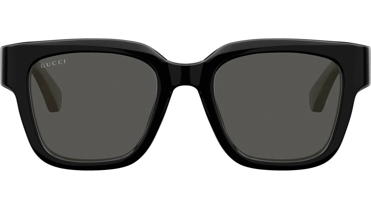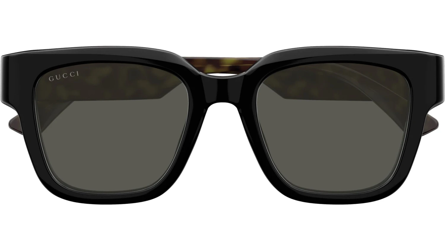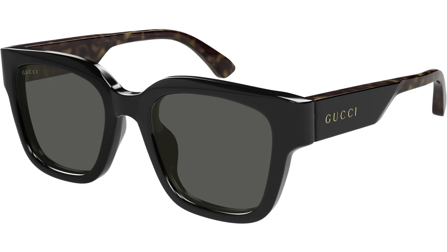 Gucci sunglasses model GG1670SK Lettering line rectangle recycled acetate frame color code 001 shiny black with havana temple and solid grey lenses. Authorized Gucci online reseller. Your glasses will come with the original case and accessories and will be covered by a 12-month global warranty.