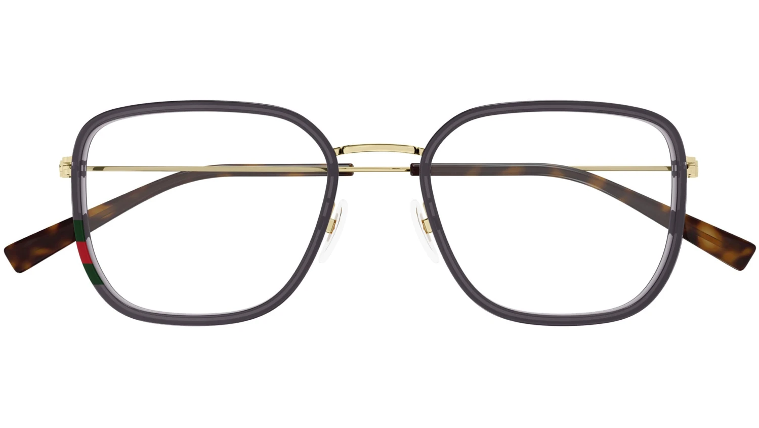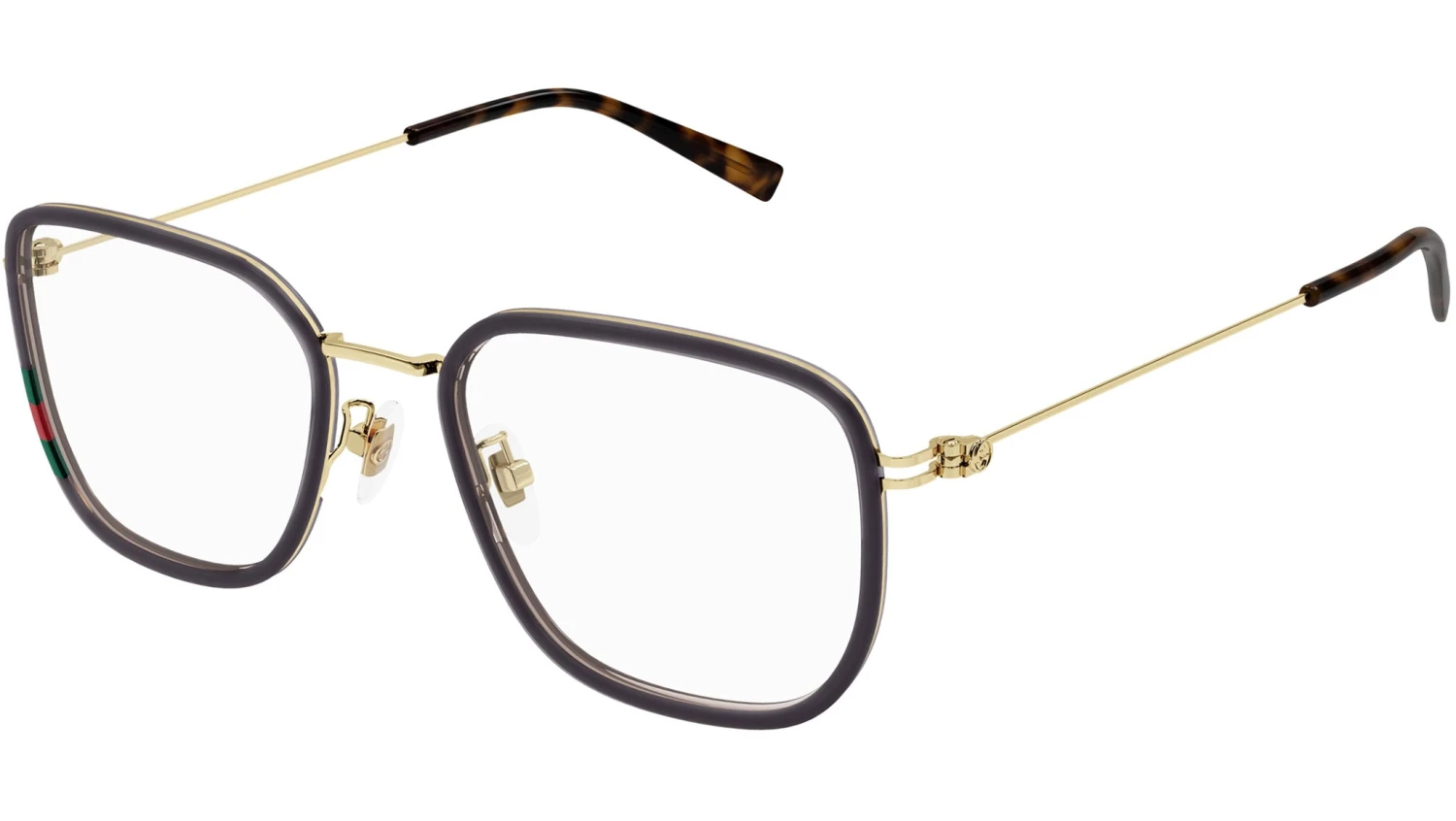 Gucci GG1852OA 003 glasses for men and woman, featuring shiny transparent taupe brown rectangular injection frame and demo lenses. Brand line: Web. Style code: GG1852OA. Color code: 003. Made in Japan. Authorized Gucci online reseller. Your glasses will include the original case and accessories and are covered by a 12-month global warranty.