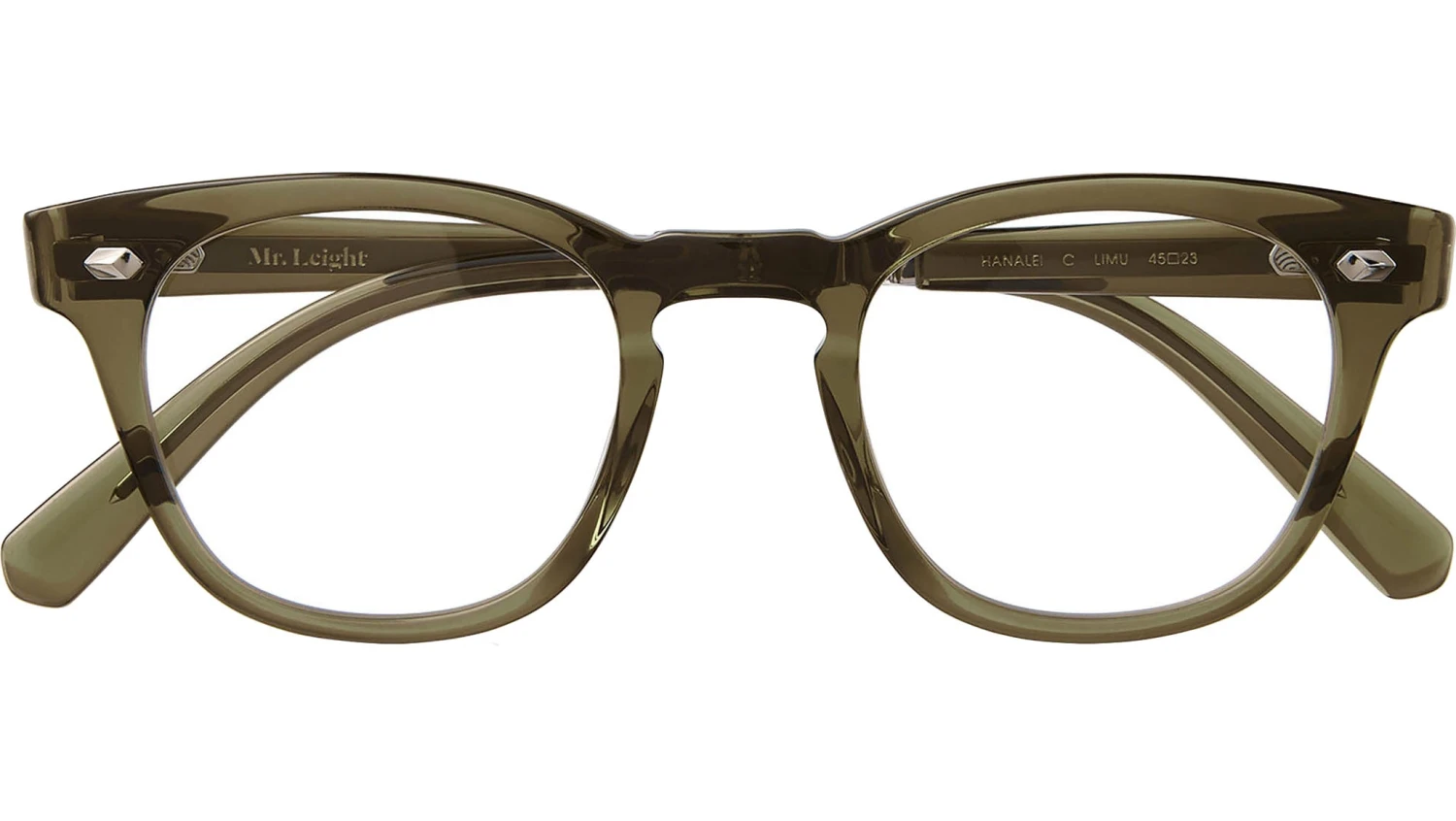 Mr. Leight Hanalei C glasses featuring limu / platinum squared acetate-metal frame and demo lenses. This statement optical frame features a slightly oversized square-shaped silhouette, meticulously handcrafted from rich custom acetates and premium metals. The frame is constructed from cured cellulose acetate, ensuring durability and style. It is equipped with optical quality CR-39 lenses, offering excellent clarity and protection. This product is handcrafted in Japan, reflecting exceptional craftsmanship and quality. Style code: ML1008. Color code: LIMU-PLT. Authorized Mr. Leight online reseller. Your glasses will include the original case and accessories and are covered by a 12-month global warranty.