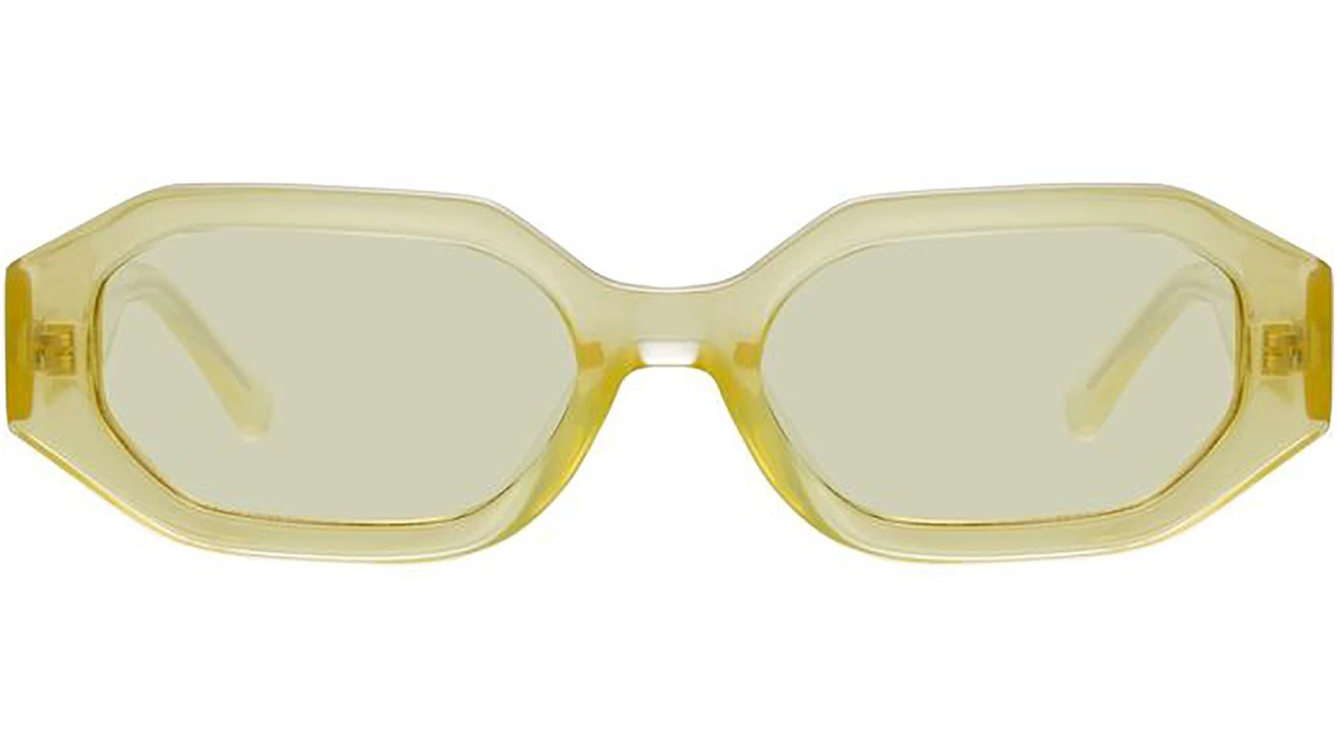 A core silhouette from the collaboration with The Attico, the Irene sunglasses are introduced in new seasonal shades. Sculpted from a sunny yellow acetate the angular hexagonal frames are highly polished to bring softness to their edge. The temples bear a yellow monogram logo and the style is completed with tonal yellow lenses for 100% UV protection.