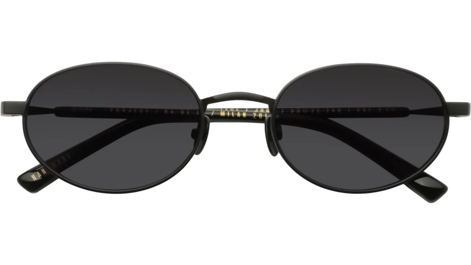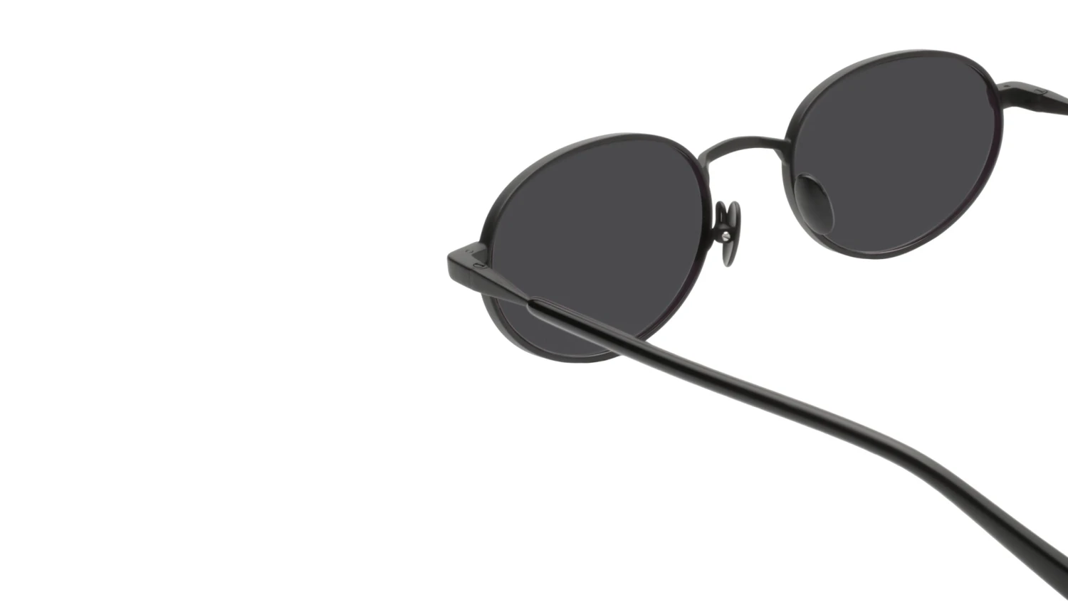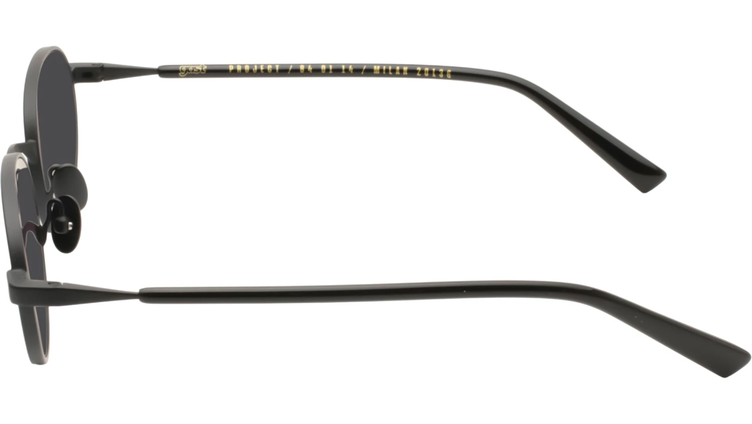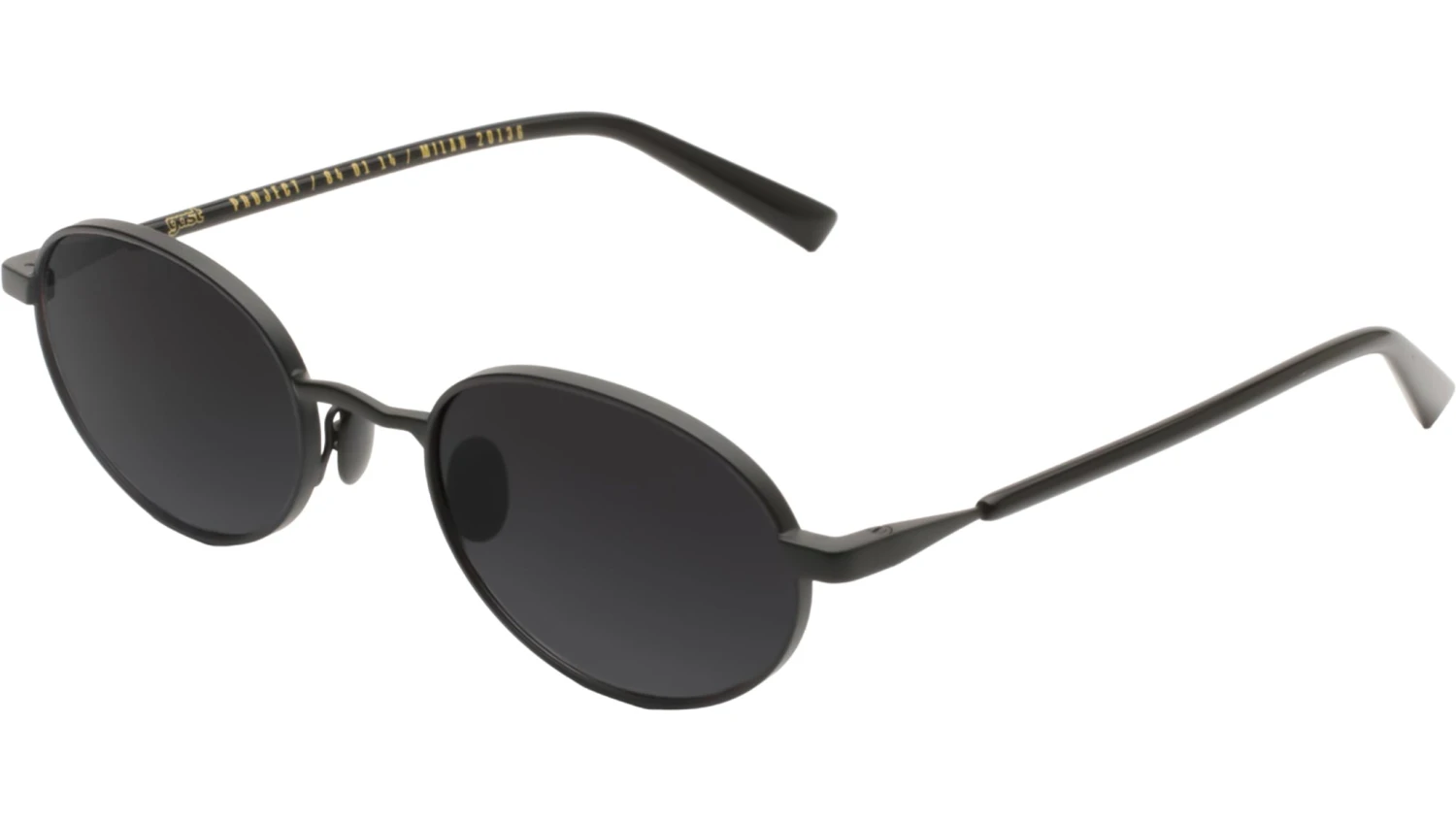Gast JADE sunglasses featuring matte black oval stainless steel frame and grey lenses. These handmade sunglasses feature a matte black stainless steel frame complemented by black acetate temple end-tips. Equipped with gradient grey nylon lenses, they provide 100% UVA and UVB protection and include an anti-reflective inside coating. The lenses are classified as Category 3, ensuring optimal sun glare reduction and visual comfort. Style name: JADE. Color code: JD01. Authorized Gast online reseller. Your glasses will include the original case and accessories and are covered by a 12-month global warranty.