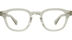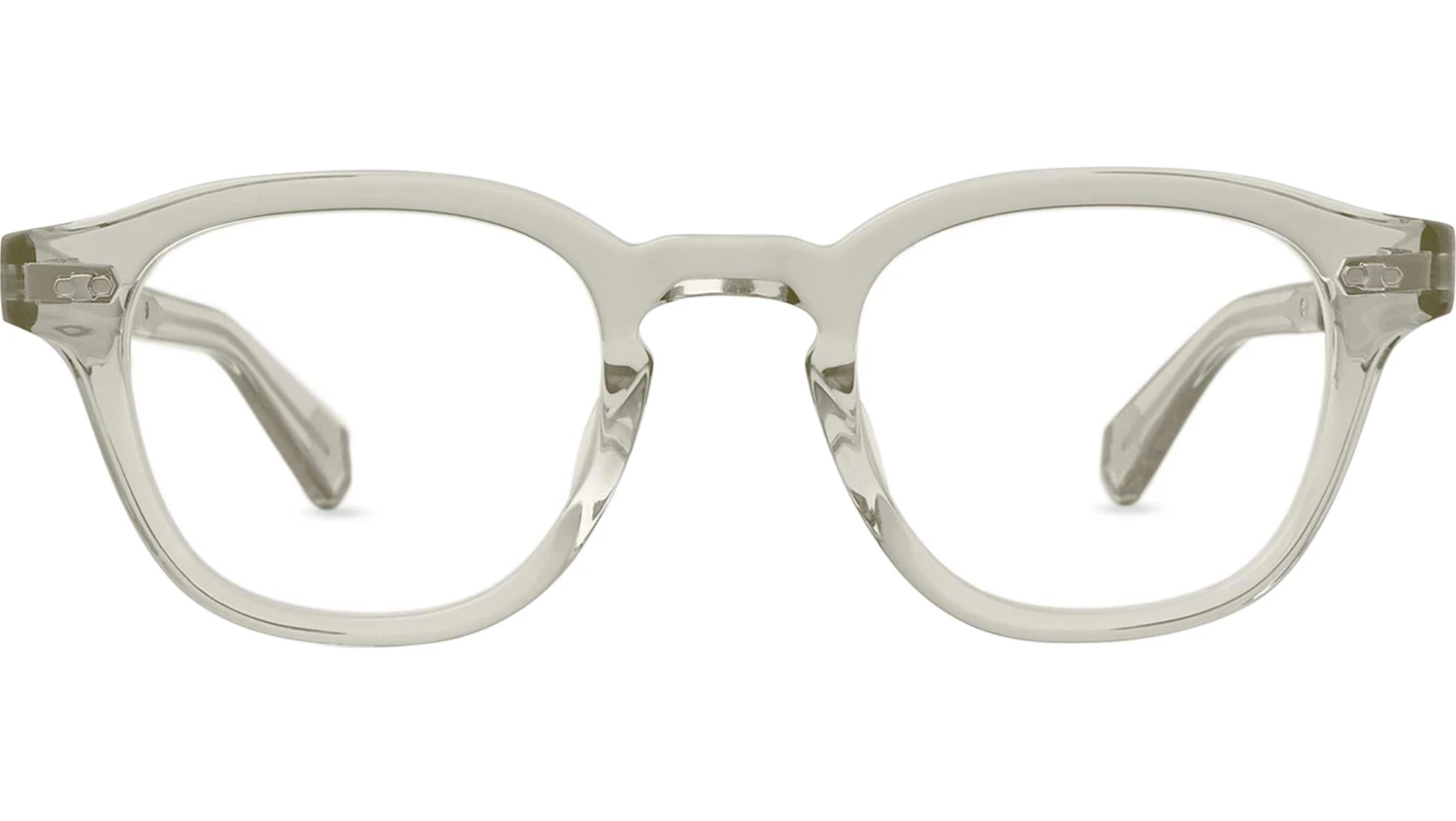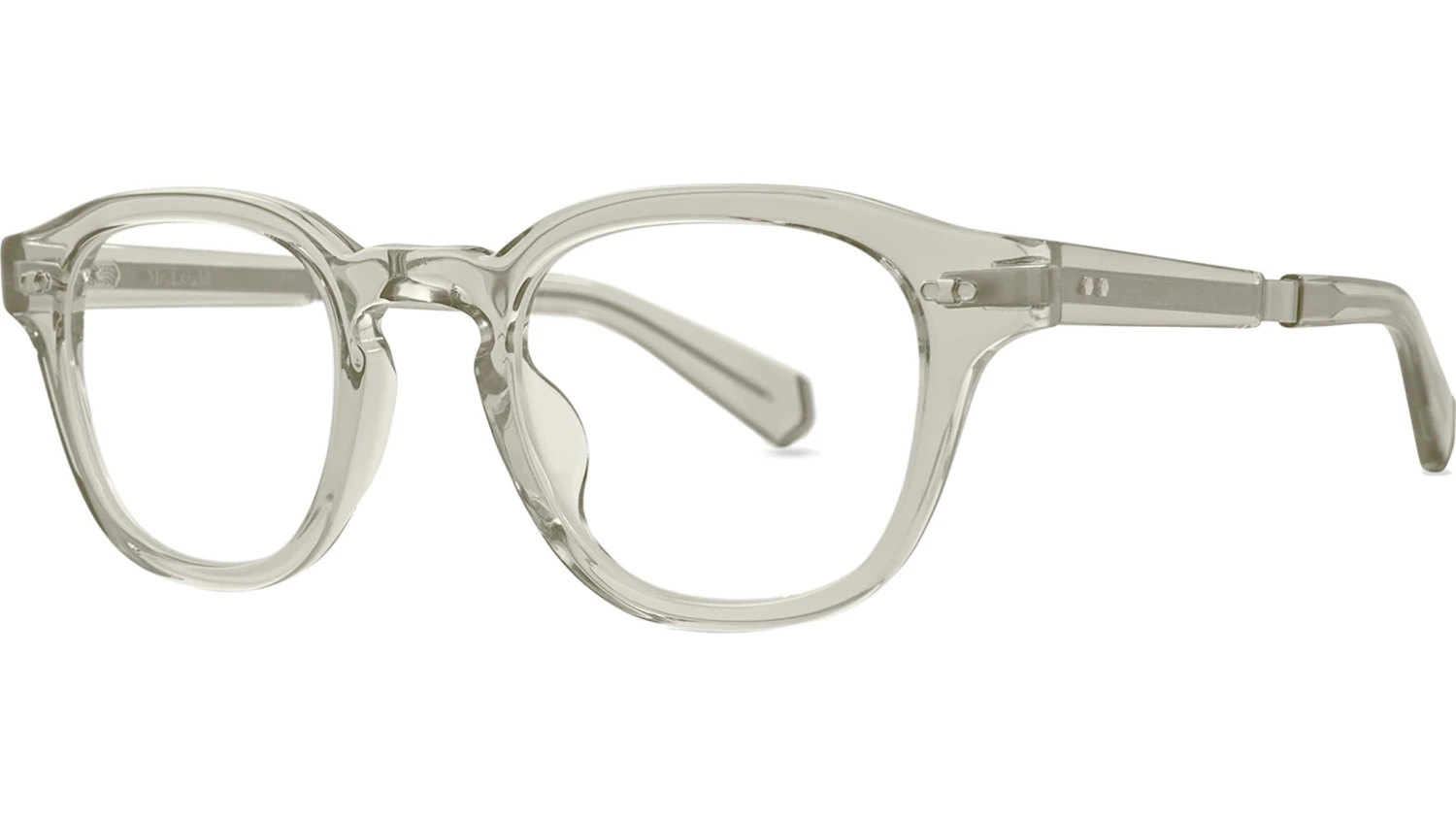 Mr. Leight James C glasses featuring morning dew / platinum squared acetate-metal frame and demo lenses. The Mr. Leight James C showcases a refined interpretation of a classic eyewear style. This design features subtle angles along the top line and a Geo plaque that enhance the frame’s distinguished aesthetic. Crafted in Japan, the frame is constructed from cured cellulose acetate and incorporates a custom Topography engraved metal core wire. It includes optical quality CR-39 lenses with a 4 Base curvature and a backside anti-reflective coating for improved clarity. The flexible titanium coil temples ensure a comfortable fit, while the keyhole nose bridge and custom hexagon riveted pins on the temples add distinctive touches. Additionally, the custom engraved hinge with an enamel-filled Mr. Leight logo cap and 3 barrel hinges enhance durability, complemented by metal temple tips. This unisex model combines elegance and functionality. Style code: ML1050. Color code: MORD-PLT. Authorized Mr. Leight online reseller. Your glasses will include the original case and accessories and are covered by a 12-month global warranty.