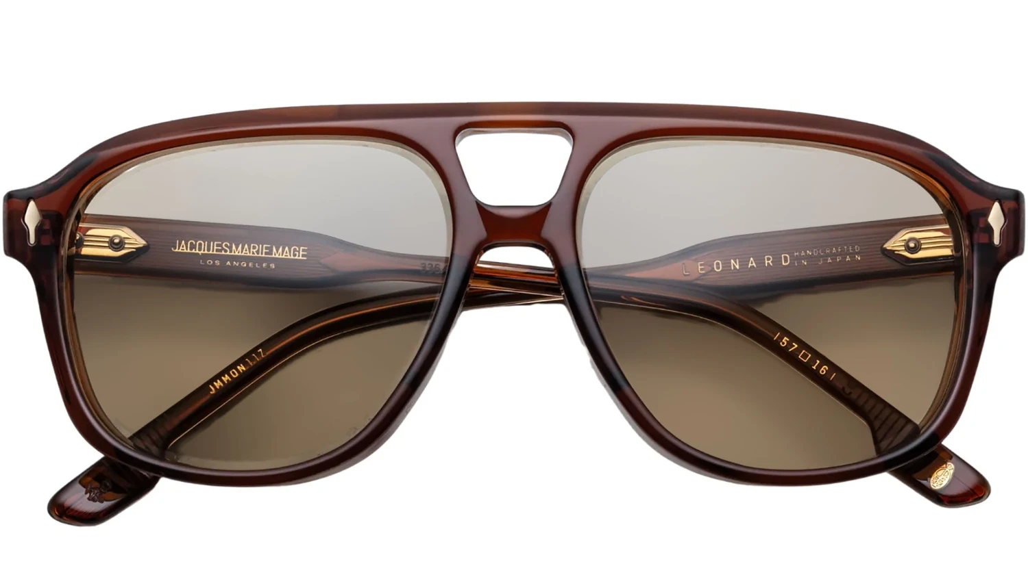Jacques Marie Mage Leonard Early-’80s-inspired spectacles with refined navigator lens shape and a slim silhouette, boasting a balanced double-bridge design and ‘Vauxhall’ wirecores with signature hairline details. An outsider with insider cred, the cool demeanor of these ‘80s-inspired spectacles comes to a head among a refined navigator lens shape and slim silhouette, humble-bragging a balanced double-bridge design complimented by our signature arrowhead front-pins and ‘Vauxhall’ wirecores with exquisite hairline details.