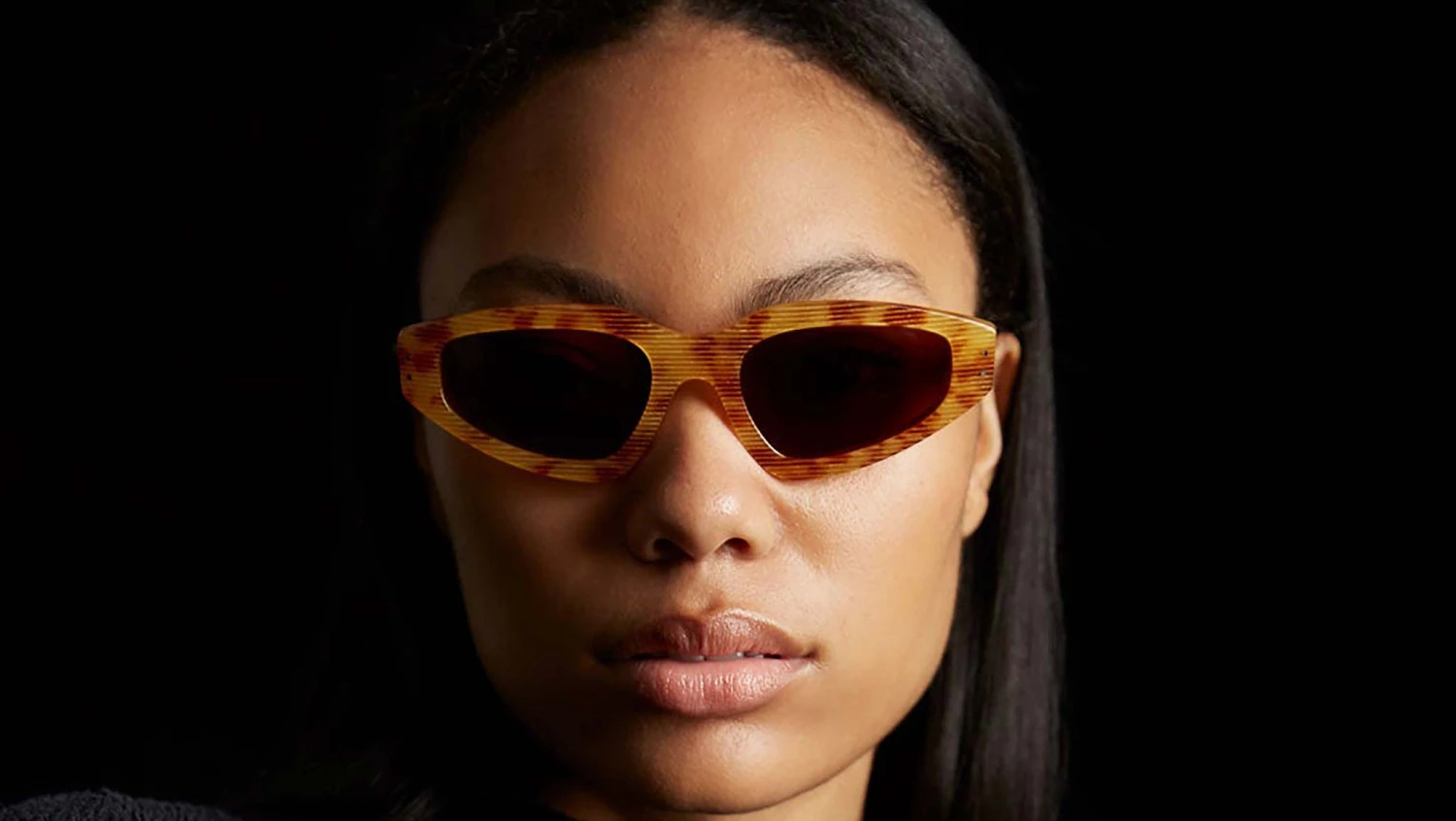 Lime is a fresh contemporary silhouette characterised by a unique triangular design. A futuristic, modern frame, Lime features thick acetate construction with a curved nose-bridge and wide temples. Sophisticated detailing, such as chiselled rims and metal rivets complete the piece. This version comes in a playful acetate finish in brown and yellow inspired by New York’s urban fabric. Sizes: R Lens Width: 57 mm. Frame Front: Frame Side: 145 mm. Product Code Size R: WRR