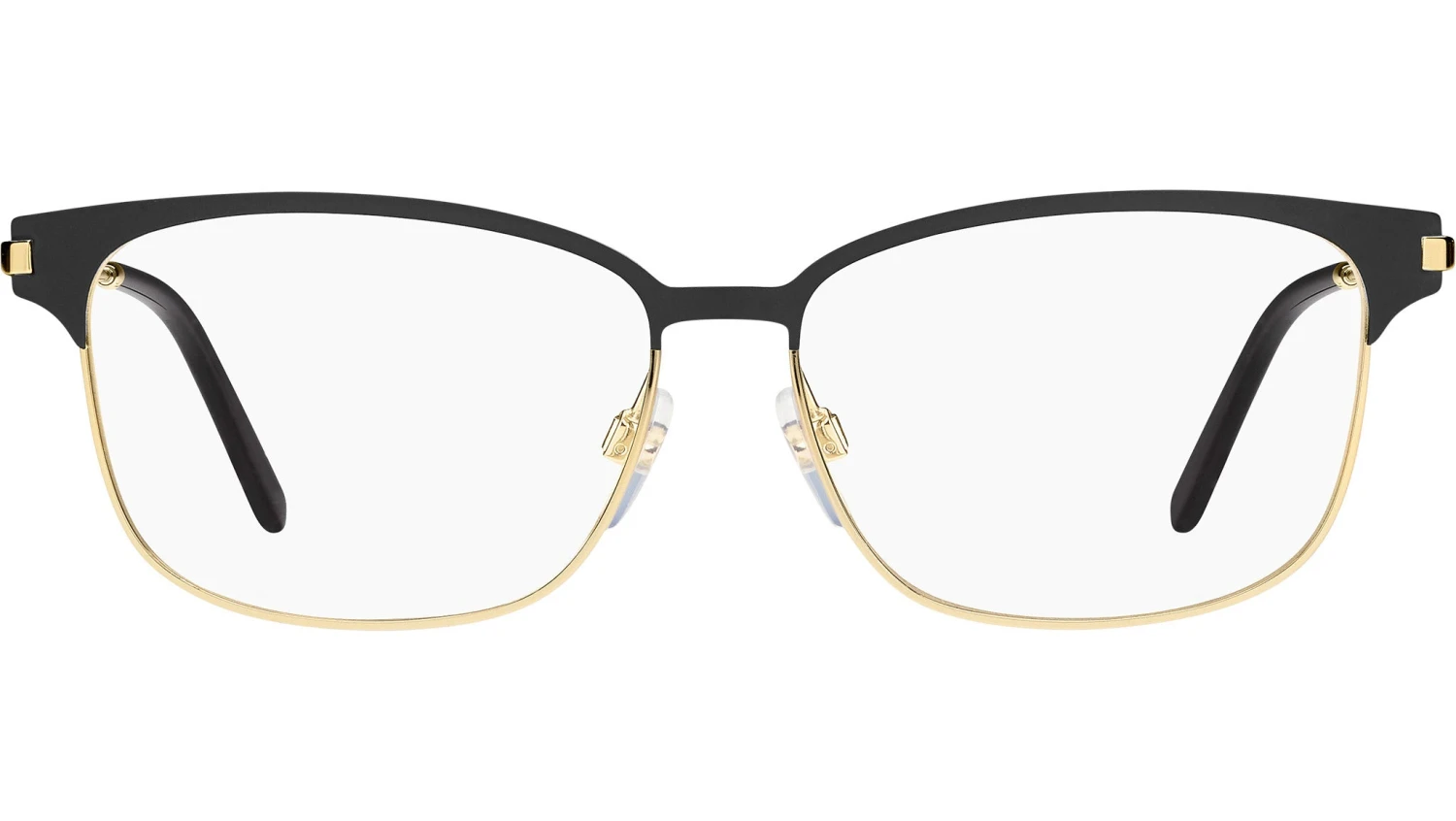 Marc Jacobs optical frame model MARC 535 color code 2M2 black gold with demo lens. A cat eye full rim metal glasses designed for women. Authorised Marc Jacobs Online Reseller. Your glasses will come including the original case and accessories and will be covered by 12 month global warranty. A style shortcut to effortless elegance – these women’s eyeglasses stand out with their classic rectangular shape, softly elongated for a cat-eye effect, and two-tone metal construction. The full-rim front is paired with delicate temples, engraved with the brand’s logo, and tipped with smooth acetate for comfort. The season’s versatile color palette ensures that these optical frames are just as easy to style as they are covetable.