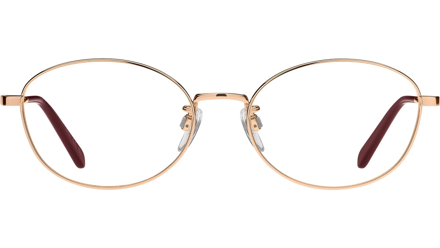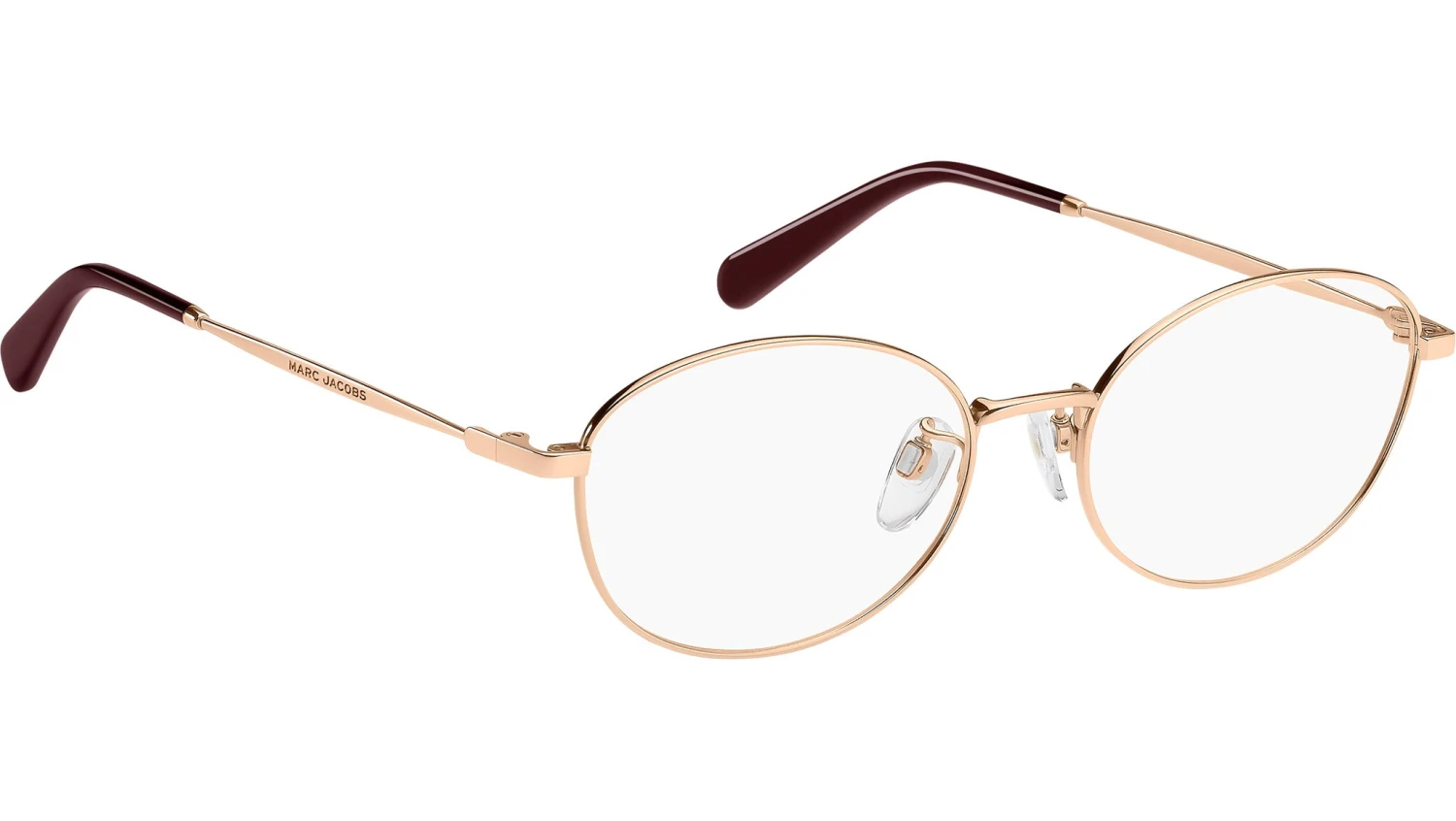 Marc Jacobs MARC 795/FJ NOA glasses for women, featuring gold burgundy oval titanium frame and demo lens lenses. Brand line: Contemporary Woman. Style code: 108927. Color code: NOA. Authorized Marc Jacobs online reseller. Your glasses will include the original case and accessories and are covered by a 12-month global warranty.
