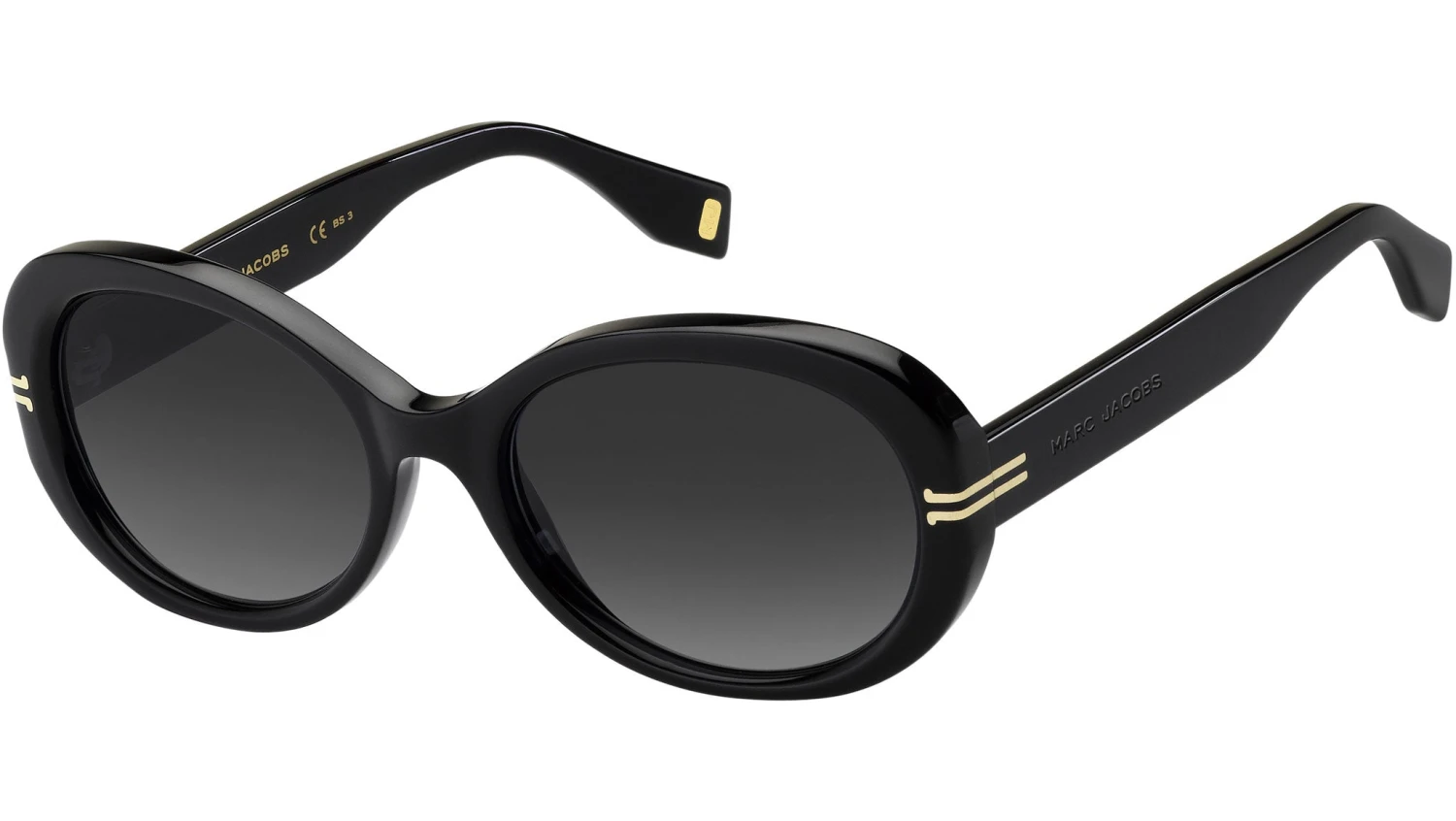 Marc Jacobs sunglasses model MJ 1013/S color code 807 black with dark grey shaded lens. A cat eye full rim acetate shades designed for women. Authorised Marc Jacobs Online Reseller. Your glasses will come including the original case and accessories and will be covered by 12 month global warranty. The ultimate blend of fashion-forward style and comfort, these women’s sunglasses are guaranteed to stand out. The softly rounded, cat-eye frames are crafted from acetate and bevelled around the front for a modern 3D effect. Beautifully accented with the double J metal trims adorning the lugs and temples, they also feature subtle logo lettering along the arms and logo-engraved plaques at the end tips, ensuring this easy-to-wear pair remains luxurious and sophisticated.