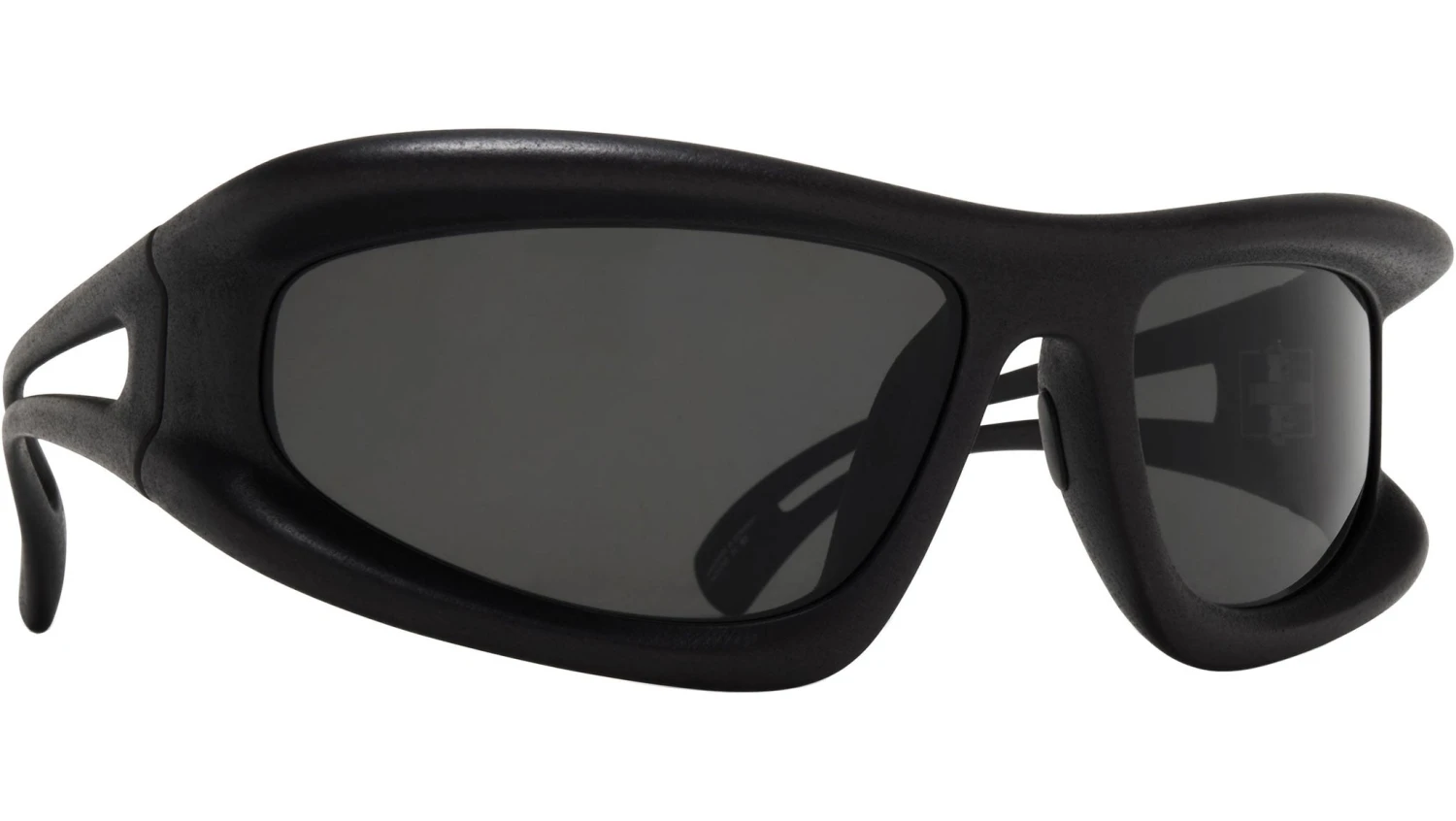 The Mykita Marfa sunglasses, a standout piece from the collaboration with 032c for the SS24 ready-to-wear collection, showcase a voluminous wraparound design. Crafted from the high-tech, patented MYLON material, these sunglasses offer maximum volume while maintaining a feather-light weight. Handmade in Berlin, they exemplify precision and innovation. These sunglasses feature a hydrophobic nano-coating, ensuring durability and resistance against elements. The patented hinge system adds to their uniqueness, coupled with the capability for individual adjustment for a personalized fit. The tinted polyamide sun visor not only provides 100% protection against UVA/UVB rays but also includes an anti-reflective inner coating for optimal vision. Despite their size, these sunglasses are remarkably lightweight, making them comfortable for extended wear. Each pair comes with a branded eyewear case and a cleaning cloth, ensuring they are well-maintained and protected.