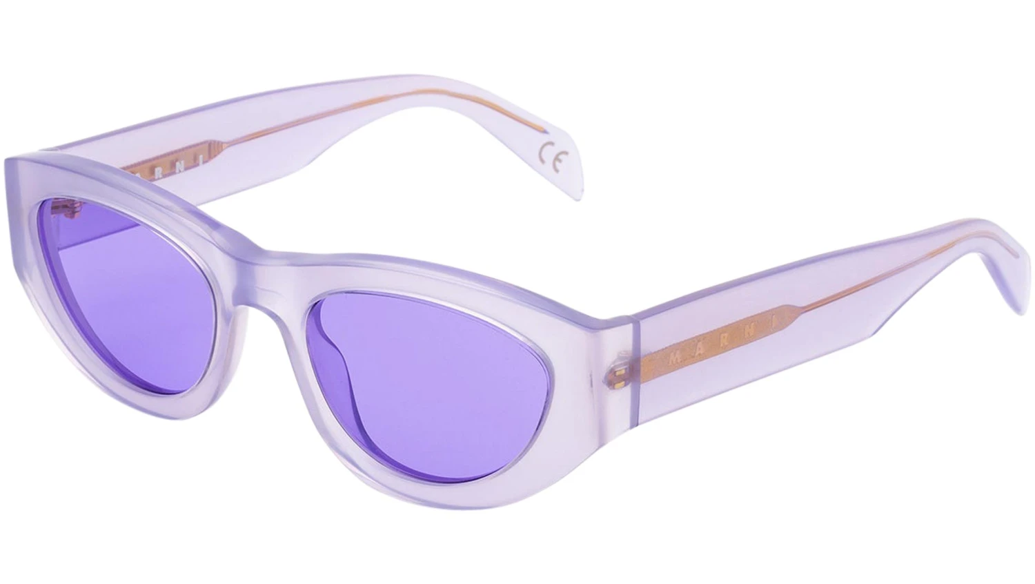 Designed exclusively for Marni, Rainbow Mountains is a fresh contemporary interpretation of classic feminine frames, reshaped for a more fluid, genderless approach to style. The model features a rounded silhouette with carefully shaped rims encasing oval lenses. Thick temples are engraved with Marni logo. This is a playful version that comes in a tinted purple acetate and matching lenses. Sizes: Lens Width: 52 mm. Frame Front: Frame Side: 145 mm.