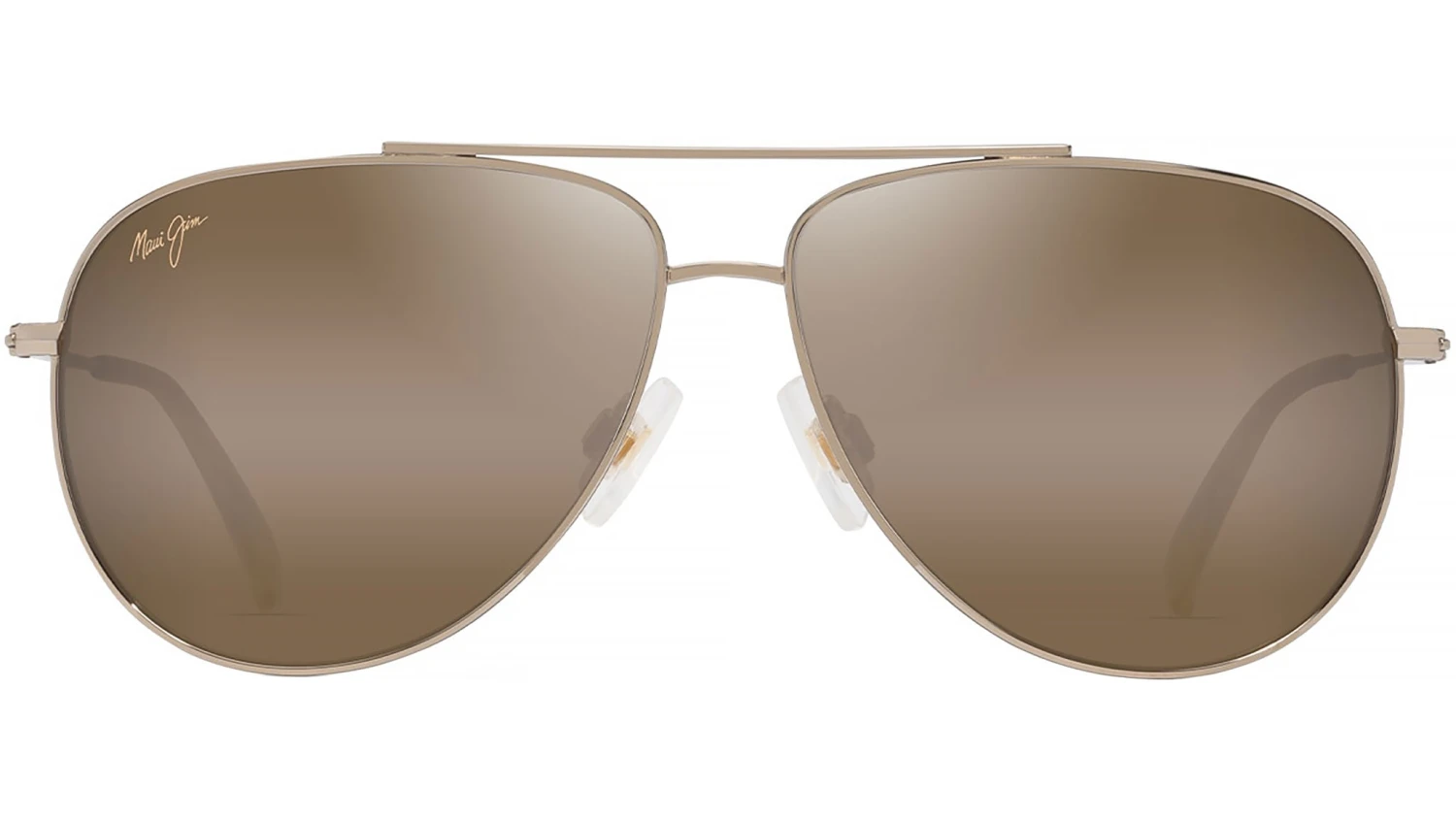 Maui Jim Hauoli sunglasses featuring shiny light gold / orange & yellow pilot monel frame and HCL® bronze lenses. The Maui Jim Hau‘oli sunglasses bring a refined elegance to the classic teardrop aviator silhouette, offering a sophisticated balance of style and performance. Designed with MauiPure lenses and PolarizedPlus2 technology, they deliver vivid, high-contrast views across a range of landscapes, from city skylines to coastal vistas. The large frame features a light gold finish with crystal-accented temples, complemented by transparent tips showcasing a colorful wavy pattern. Adjustable silicone nose pads and a double bridge ensure comfort and stability. Suitable for all genders, this aviator model exemplifies Maui Jim’s signature blend of advanced optics and timeless design. Brand line: Lifestyle. Style code: H665. Color code: 16B. Made in Japan. Authorized Maui Jim online reseller. Your glasses will include the original case and accessories and are covered by a 12-month global warranty.