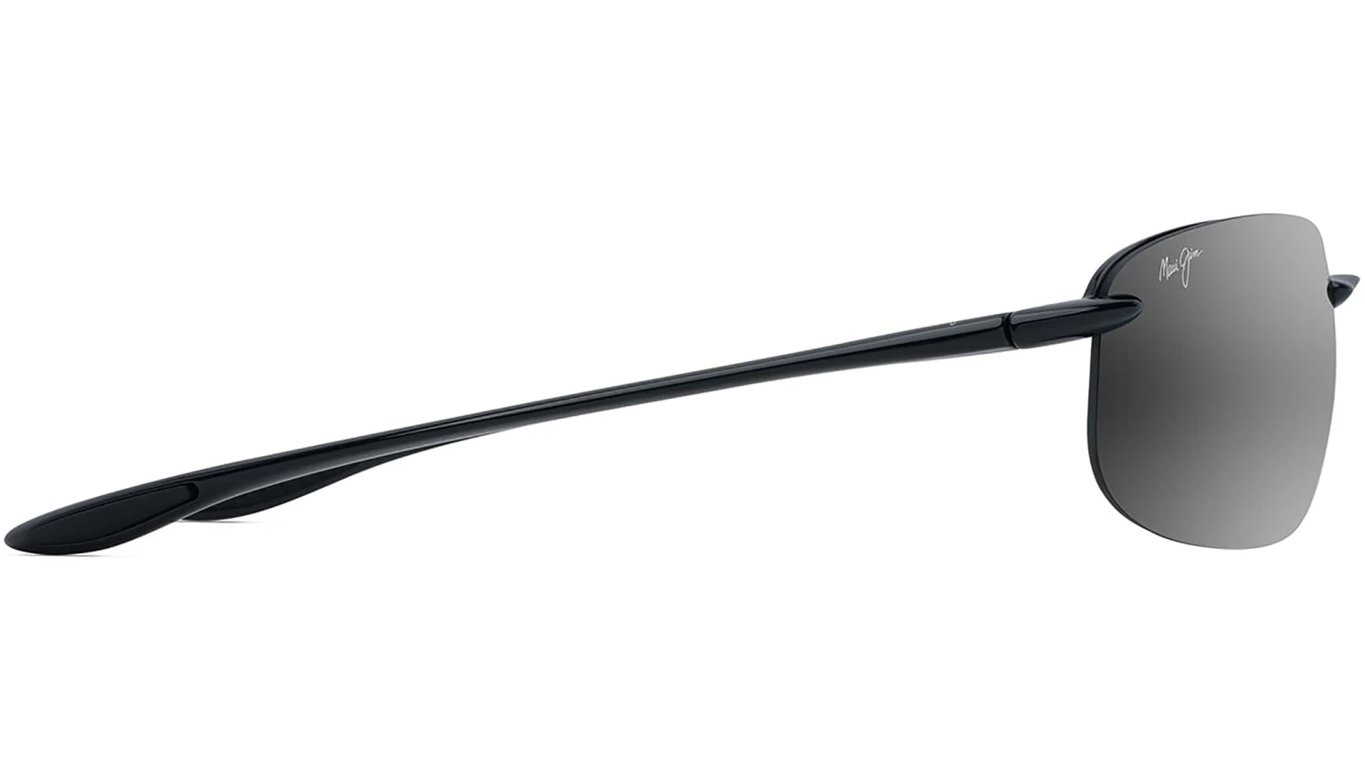Maui Jim Ho’okipa Xlarge sunglasses featuring black gloss pilot acetate frame and neutral grey lenses. Crafted to flatter square and oblong face shapes, the Maui Jim Ho’okipa Xlarge sunglasses offer a modern, performance-driven update to a beloved classic, featuring a sporty rimless design with refined curving temples and a wide, larger fit. Engineered with Maui Ultra lenses and PolarizedPlus2 technology, they provide ultra-lightweight durability and exceptional color enhancement for dynamic outdoor pursuits. Embedded nose pads made from Hi-Per thermoplastic elastomer ensure secure comfort, while the signature wavy pattern and a script logo carved into the rubber temple tips add distinctive detailing. Finished in black, this unisex frame exemplifies Maui Jim’s commitment to advanced optics and contemporary style. Brand line: Lifestyle. Style code: 456. Color code: 02. Made in Japan. Authorized Maui Jim online reseller. Your glasses will include the original case and accessories and are covered by a 12-month global warranty.